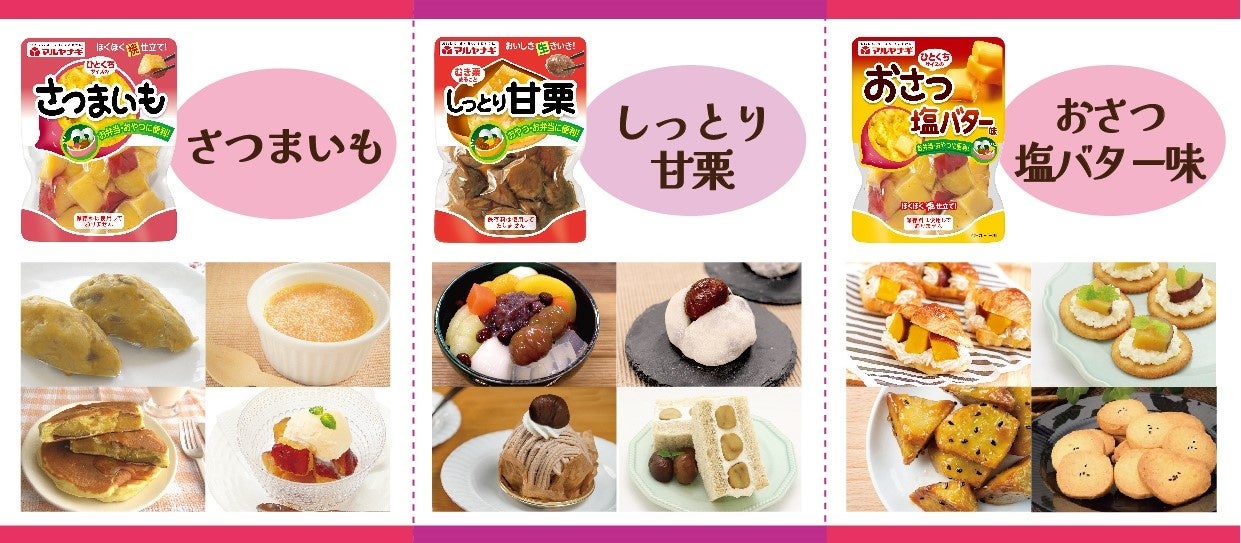 蒸し豆・佃煮・煮豆のマルヤナギブランドを展開する株式会社マルヤナギ小倉屋(神戸市東灘区 代表取締役社長:柳本勇治)は、「ひとくちサイズのさつまいも」「ひとくちサイズのおさつ塩バター味」「しっとり甘栗」の3品について、SNS投票で選ばれたアレンジスイーツレシピを掲載したパッケージにて2023年4月20日より数量限定販売いたします。