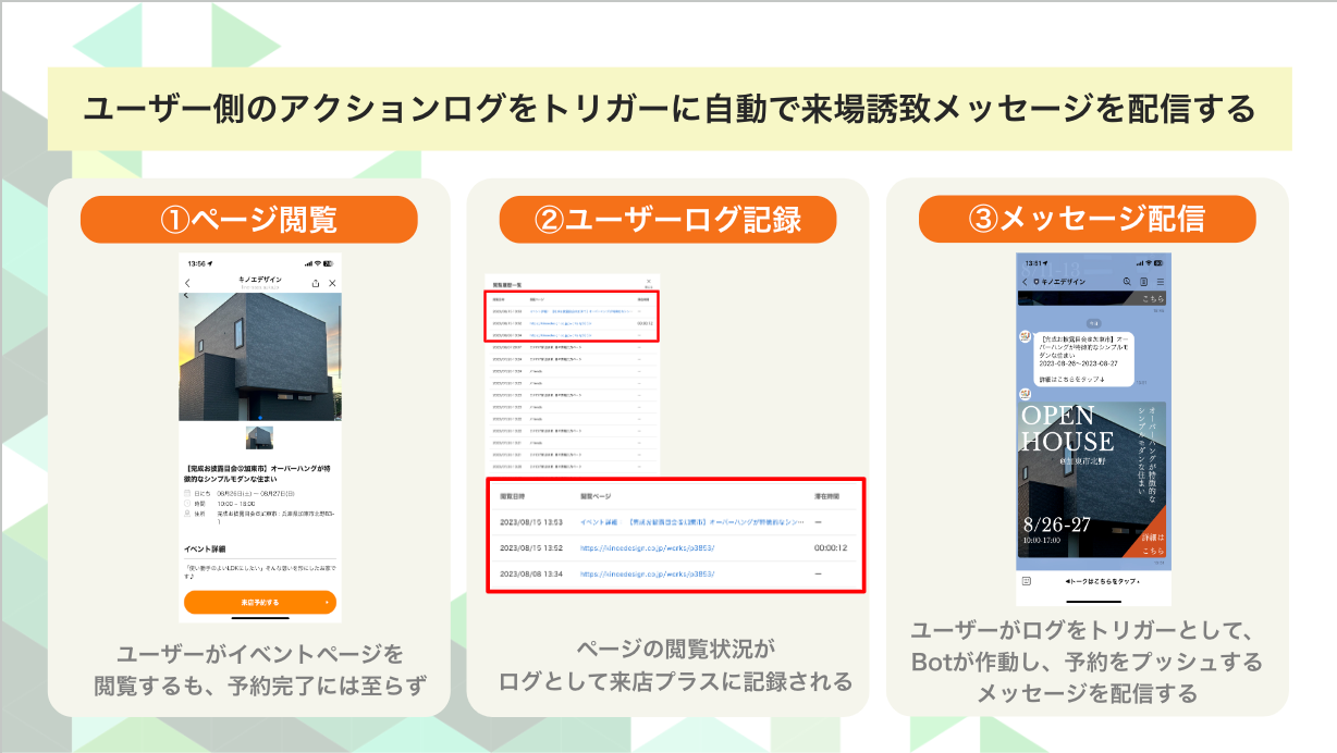 ▼実用例:ホームページを閲覧したお客様に来場誘致メッセージをLINE配信