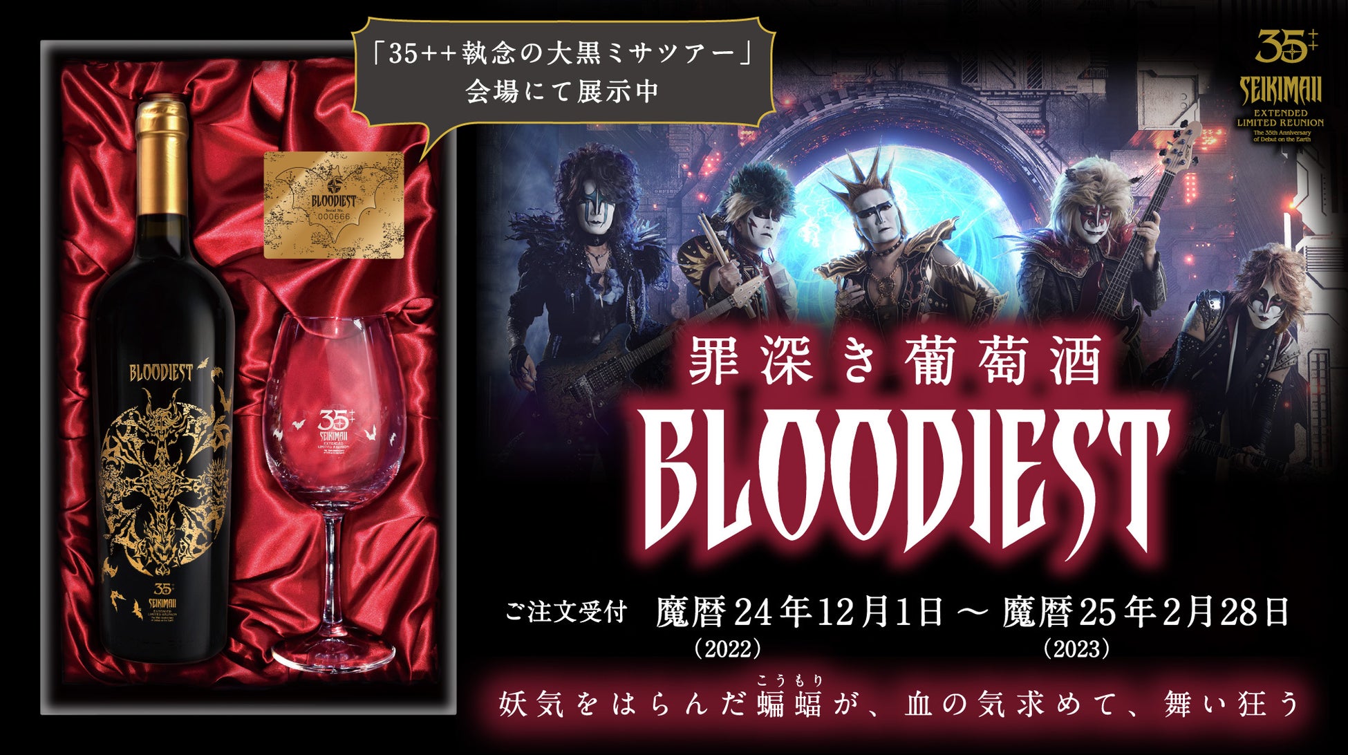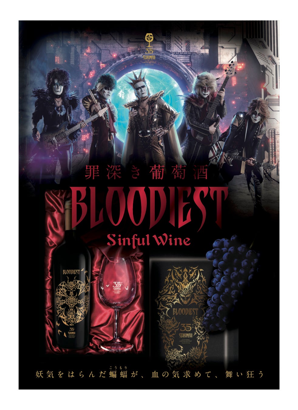 聖飢魔II期間再延長再集結「35++執念の大黒ミサツアー」開催記念ワイン&グラス、[罪深き葡萄酒 BLOODIEST]発売