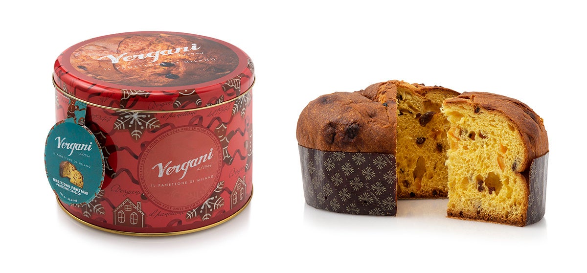 1944年からアンジェロ・ヴェルガーニ氏によって受け継がれてきた秘伝のレシピで作られた、伝統的なパネットーネです。卵白を使わず、卵の黄身だけを使った生地は柔らかく優しい甘さが広がります。
