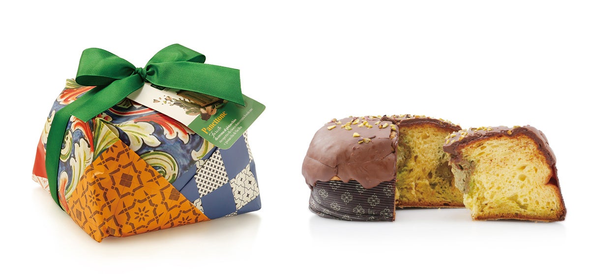 濃厚なピスタチオクリームをたっぷりとつめた贅沢なパネットーネ。香り高い生地をダークチョコレートでコーティングし、鮮やかなシチリア産ピスタチオを散りばめています。シチリア島をイメージする美しい包みも魅力的です。