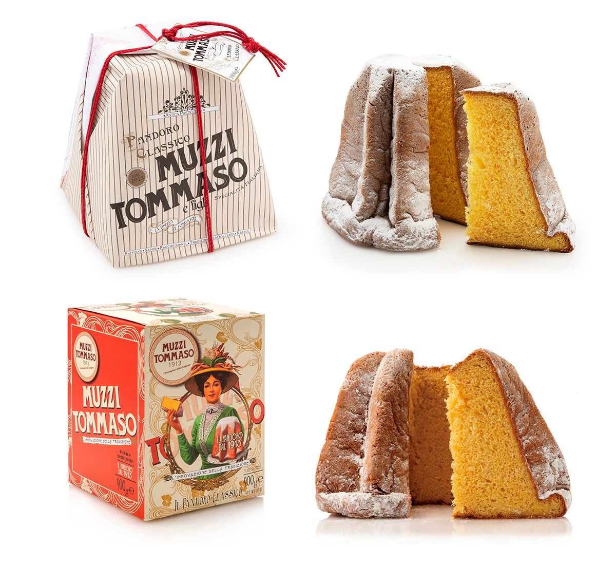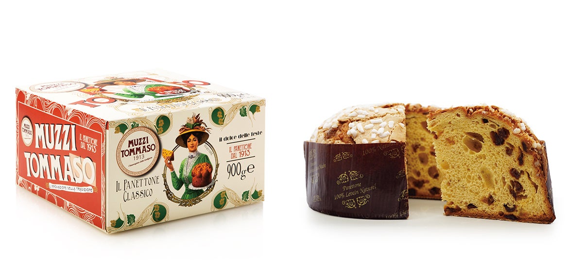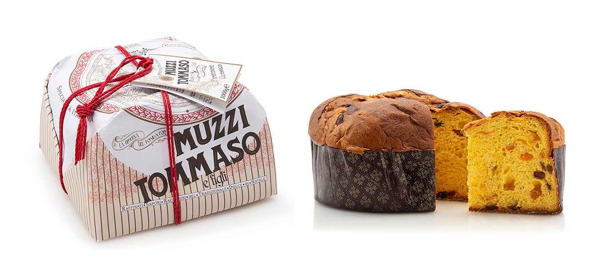 創業者トッマーゾ・ムッツィがウンブリア州の小さな工房で1795年に菓子職人としてスタート。1913年から続く創業者のレシピを使用して作られています。新鮮なバター 、卵、オレンジの砂糖漬け、サルタナレーズン、バニラなど厳選された原材料を使い、酵母によってゆっくりと発酵させた生地から作られるパネットーネは、イタリアのクリスマスを彩る特別な味わいです。