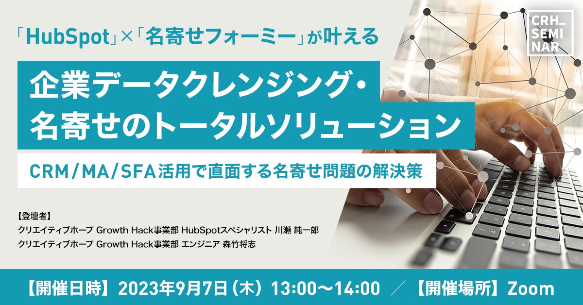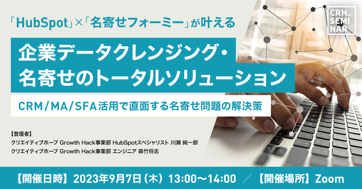 クリエイティブホープ社、ウェビナー『HubSpot×名寄せフォーミーが叶える企業データクレンジング・名寄せのトータルソリューション』を開催!