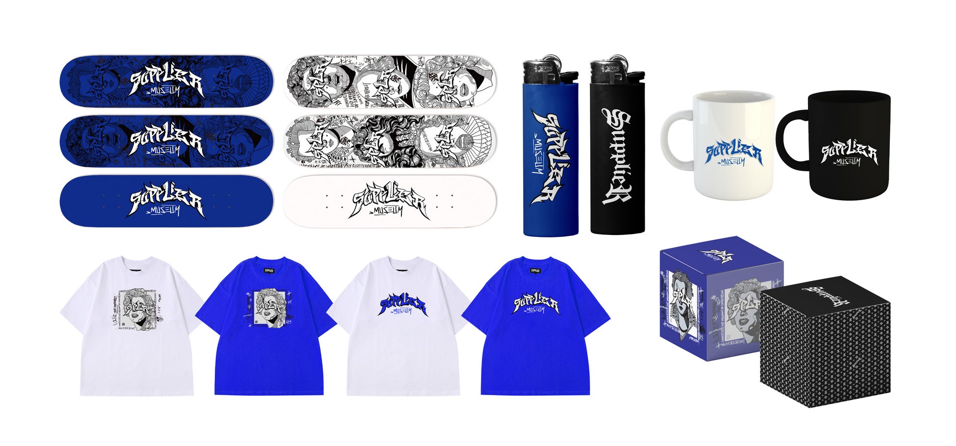 今回のPOPUPでは、「SUPPLIER MUSEUM」をテーマにデジタルとリアルが融合した新たな形の表現でSUPPLIERの世界観溢れるストリートミュージアムを演出しております。また、30年後のトレンドを取り入れたSUPPLIER2050コレクションの一部も先取り公開致します。 atmosのコンセプトカラーでもある、青と白のコントラストに囲まれた空間で、より一層の非現実、異空間をお楽しみください。 テーマカラーとなる「青」を基調としたPOPUP限定アイテムを多数ご用意。ウォーターボトルやマグカップ、スケートボードなどブランド初となる商品も展開します。