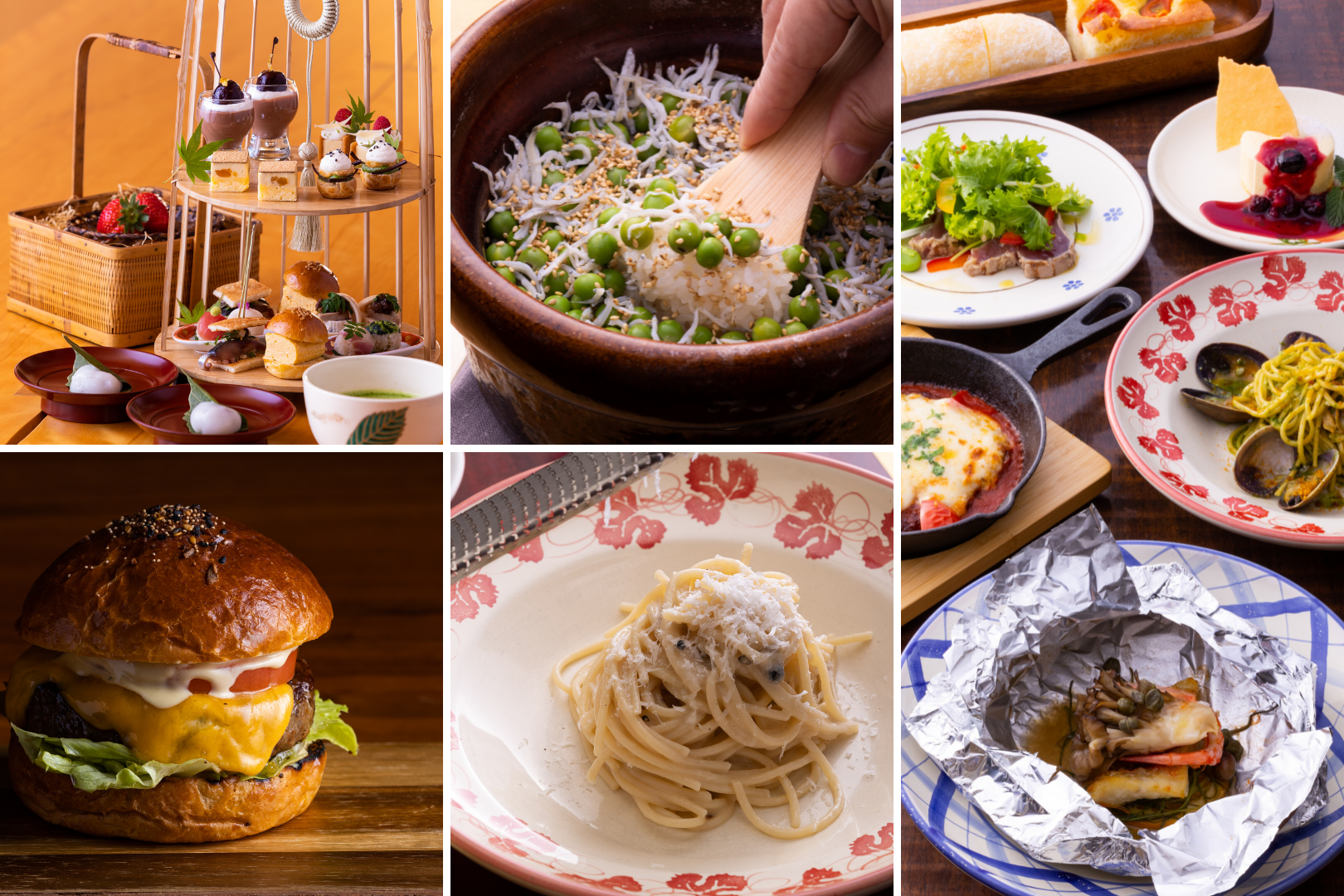 地元の良質な食材から巧みに作り出される、バラエティ豊かなカフェスタイルのお食事をご提供する「カフェ 33」、石窯で焼くピザや本格的なイタリア料理をカジュアルにお楽しみいただける「トラットリア セッテ」、風情あふれる日本庭園を眺めながら、旬の味覚をご堪能いただける日本料理 「東山(Touzan)」でご家族、ご友人、お仲間と特別なひとときをお楽しみください。