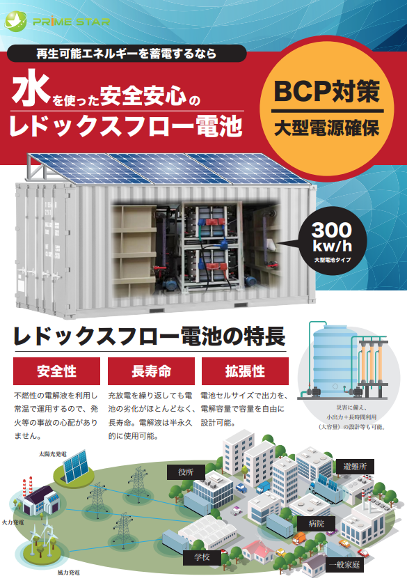 プライム・スターは日本国内で、レドックス・フロー電池を販売開始
