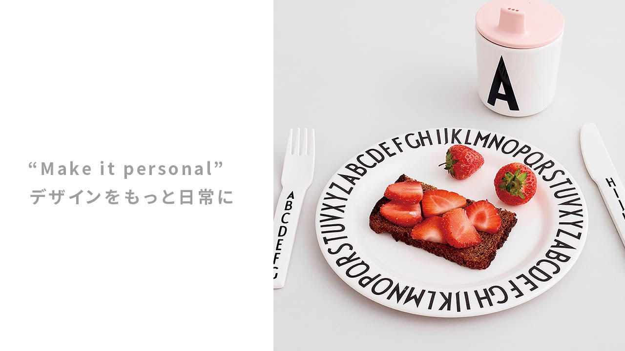 デンマークの世界的建築家アルネ・ヤコブセンによるタイポグラフィを使用したシンプル&スタイリッシュなライフスタイルアイテム。食卓をファミリーで囲む時にベビーもキッズも大人と同じ雰囲気で食事を一緒に楽しめる食器類をご紹介します。お子さまをはじめとするファミリーのイニシャルを選んで、とっておきのギフトに。