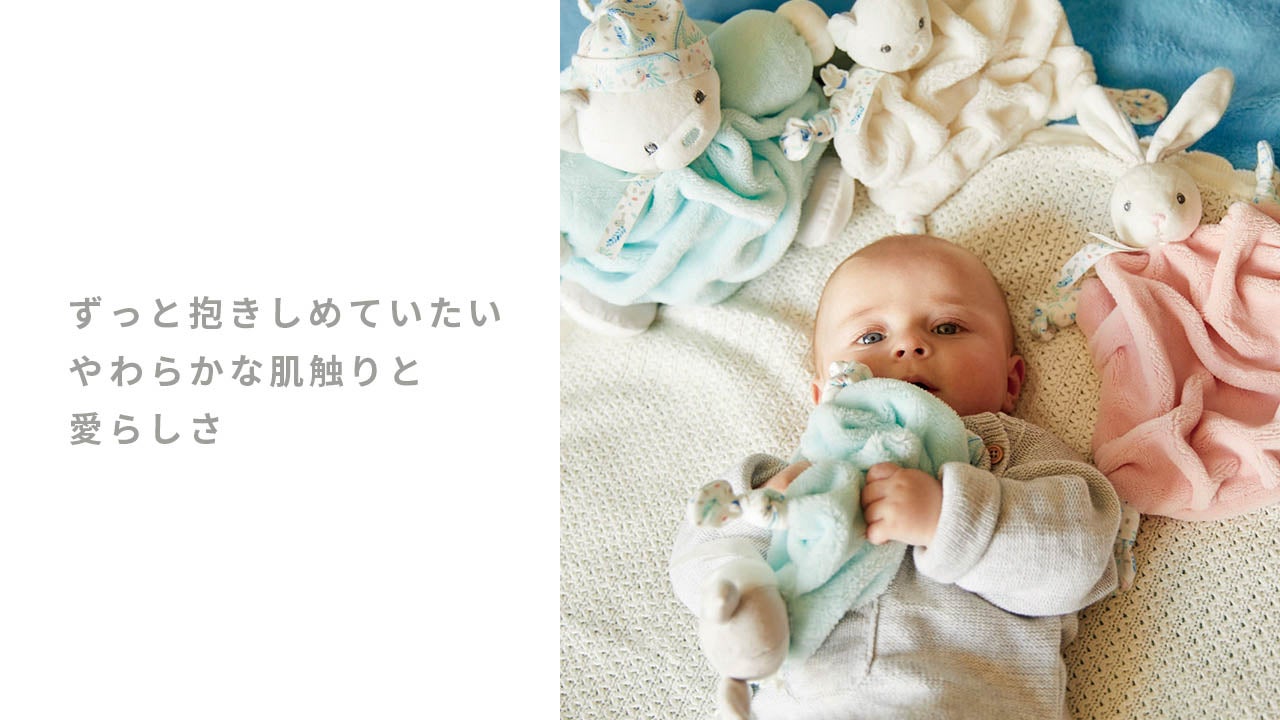 1998 年にフランスで誕生した Kaloo は、ベビーギフトとして世界中で長く愛されています。手にすると実感できる素材のやわらかさと、愛くるしさが魅力。全ての商品に高品質な素材を使用しているため、新生児期の赤ちゃんにも安心して使っていただけます。それぞれの BOX も、創立当初から変わらずシリーズごとにデザインされています。