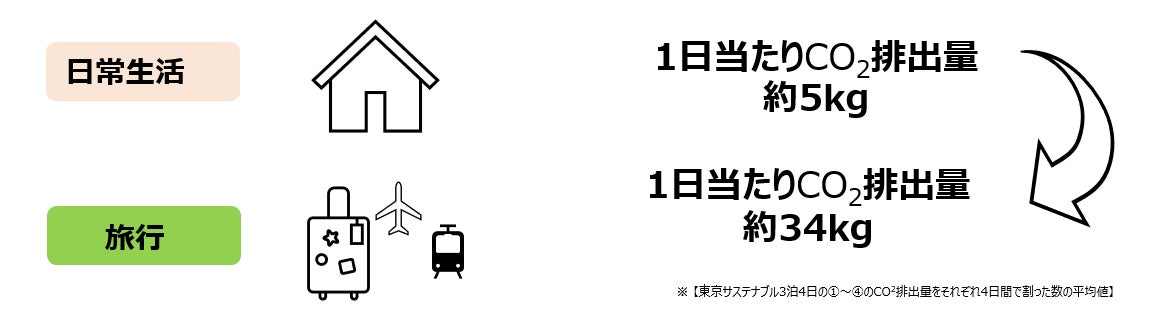 - 1日当たり、旅行は日常生活の約7倍のCO2を排出する。