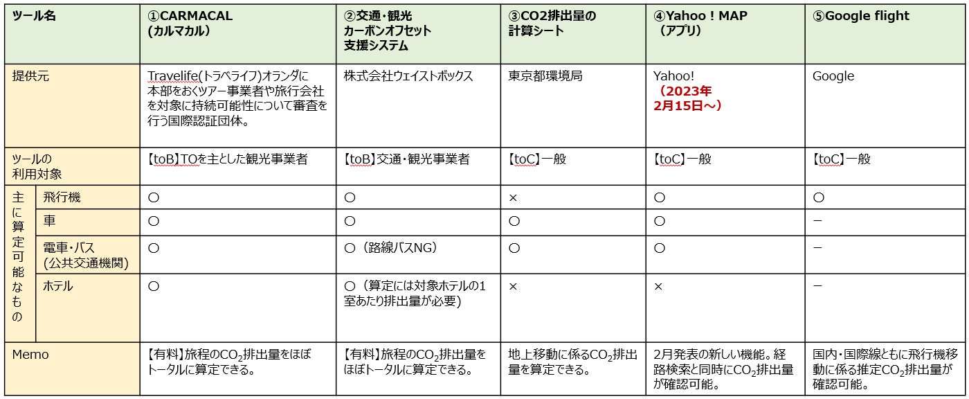 - 旅行における脱炭素促進には、算定ツールの統合化の必要がある。