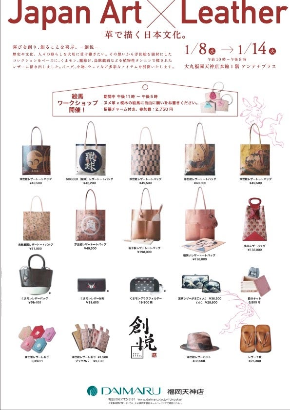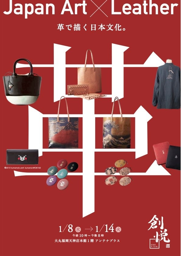 ジャパンアートとレザーのコラボレーションを手掛ける「創悦(そうえつ)」では、この度、福岡天神大丸にて、【 JAPAN ART × Leather ~革で描く日本文化~ 】と、題したPOP UPイベントを開催いたします。