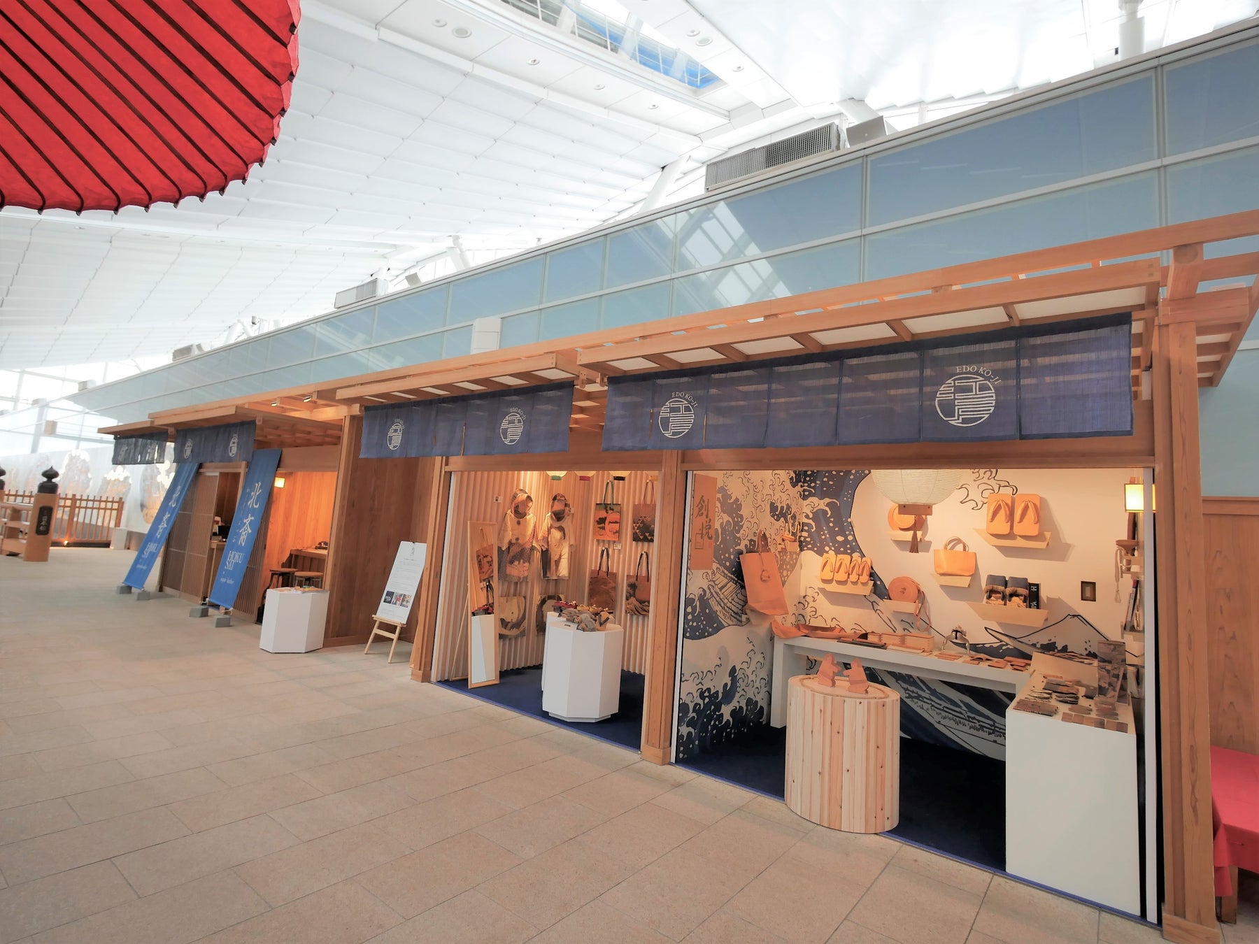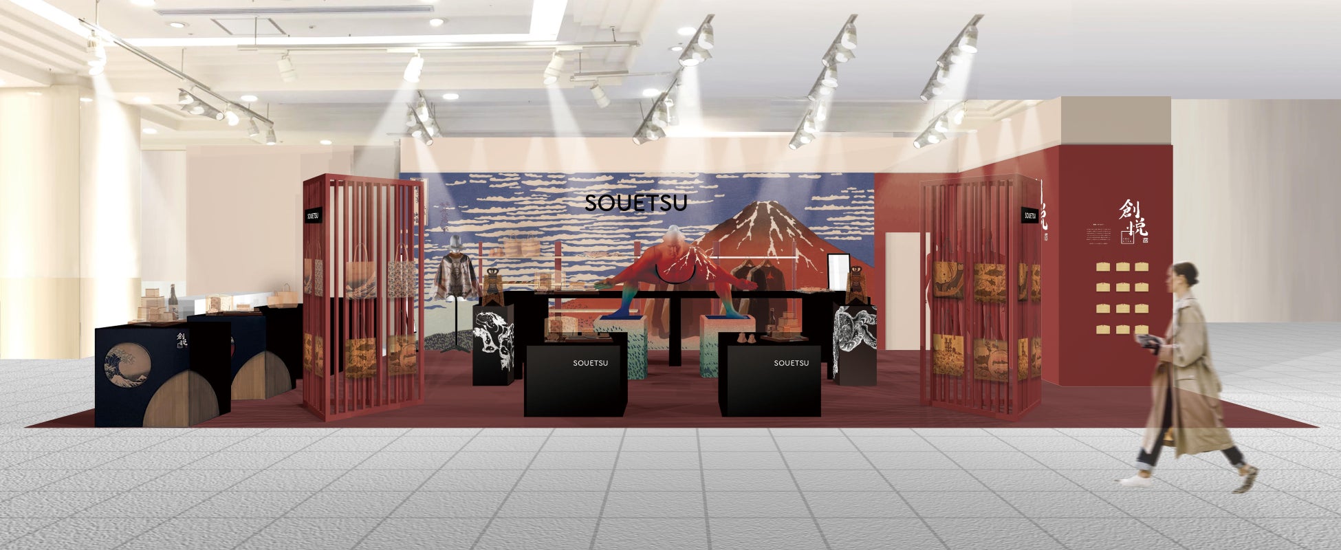 日本文化を感じる会場は、節分や受験、春節に向け、縁起の良いモチーフを取り入れ、2025年が幸運な年となるような演出をご用意しています。金運が上がると言われる「赤富士」を北斎が描いた「凱風快晴(赤富士)」に扮した「赤富士関」(超大型の相撲マネキン)が登場。またすべての道具がレザーで作られている、将棋や、福笑いを楽しむコーナー、レザー絵馬を製作するワークショップも開催致します。