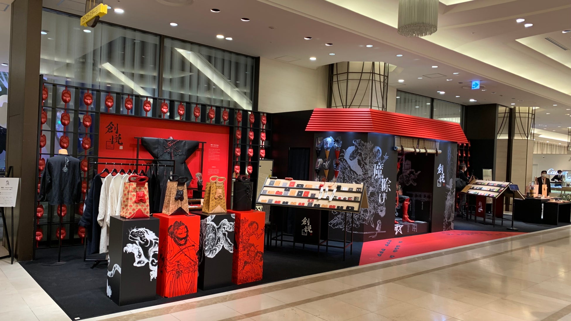 縁起のよさと「魔除け」の意味をもつ赤を基調にした会場。