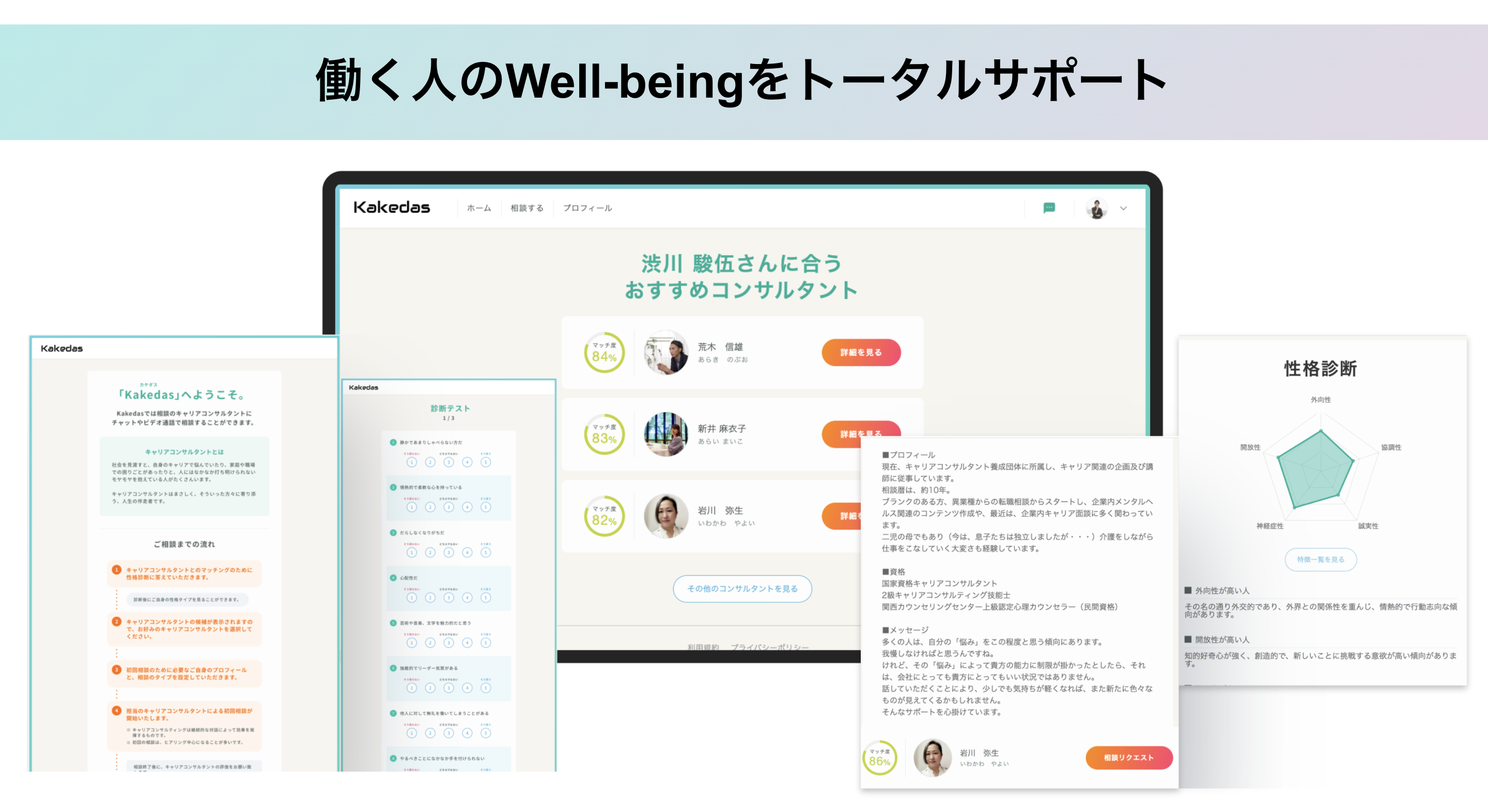 今回の資金をもとに、国家資格キャリアコンサルタントの登録者数約2,000名を有するカケダスのプラットフォームを、より迅速に社会実装していくことで、この国に相談のインフラを構築して参ります。
