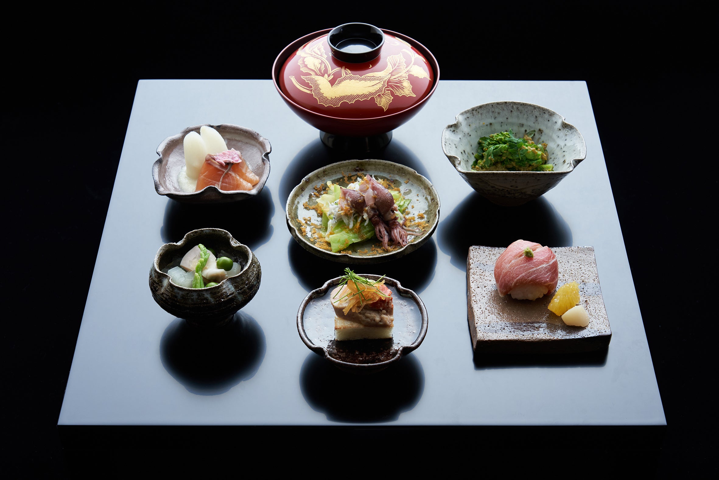 同店では、『長谷川栄雅』を最高の状態で味わっていただくため、“和食の肴”でのマリアージュを実現。日本料理の伝統を再解釈する気鋭の名店「銀座 和郷」のオーナーシェフ・小澤敬氏が、五種の酒に合わせた肴を、四季折々旬の食材を使って提案します。