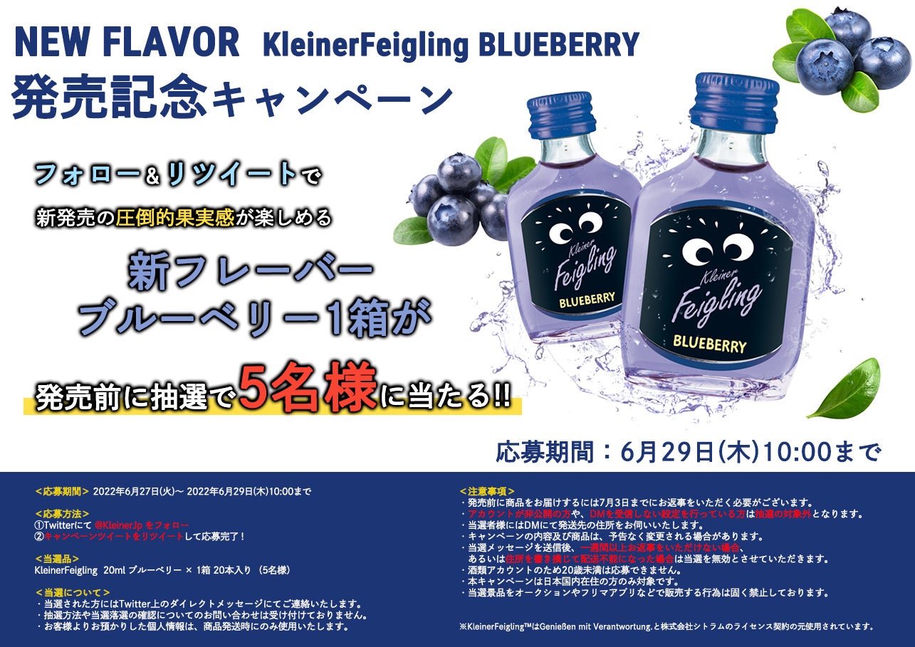 ”KleinerFeigling “ブルーベリー”の発売決定を記念して6月27日より「先行プレゼントキャンペーン」を開催いたします。