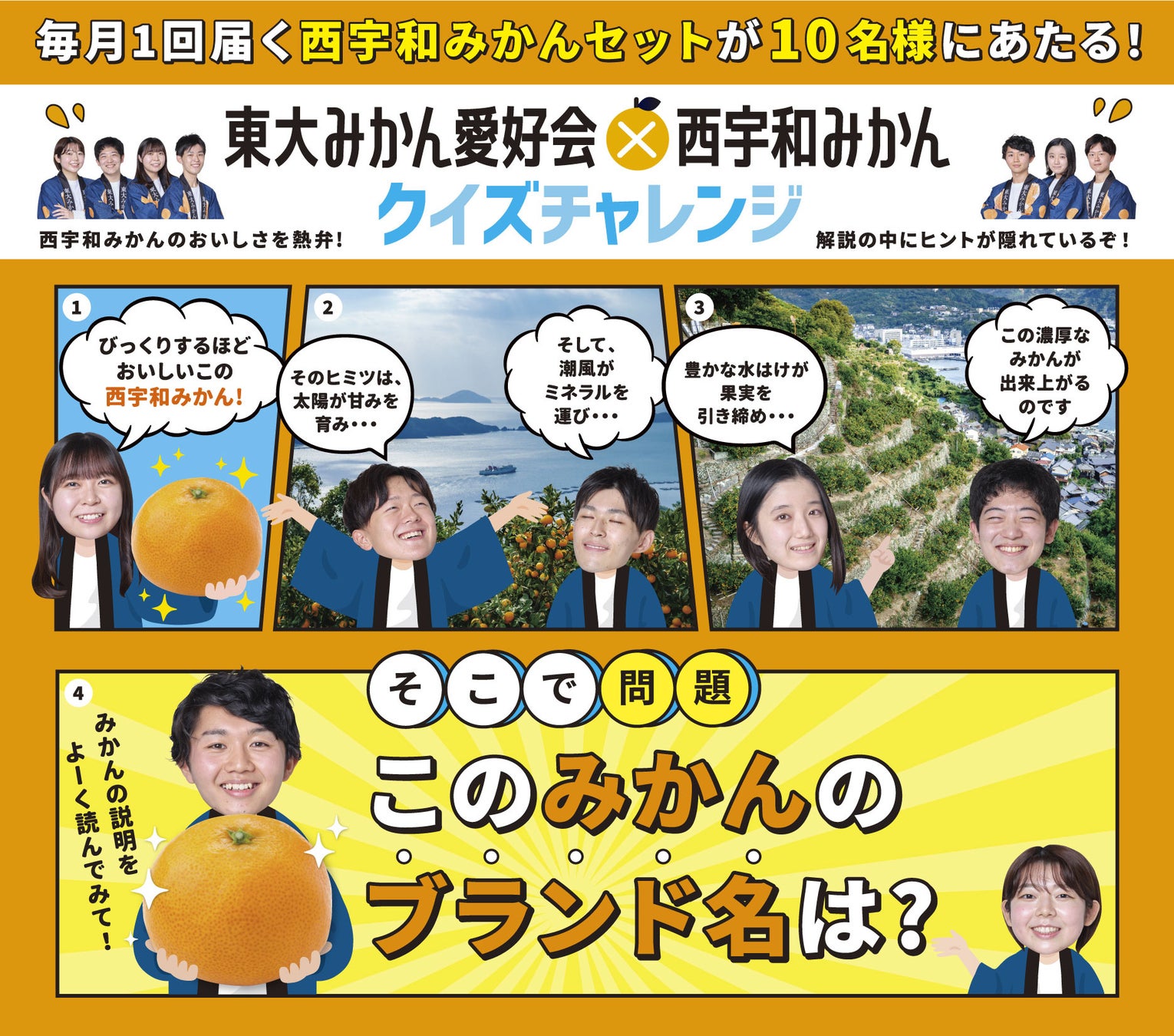 JAにしうわ(西宇和農業協同組合)は、東大みかん愛好会とコラボして、みかんや中晩柑など、西宇和の魅力が詰まった「西宇和みかんセット」が10名様に当たるクイズチャレンジを実施します。ご応募いただき、正解された方の中から、当選者10名様を決定します。キャンペーン期間は、2022年11月21日(月)~2022年12月10日(土)です。