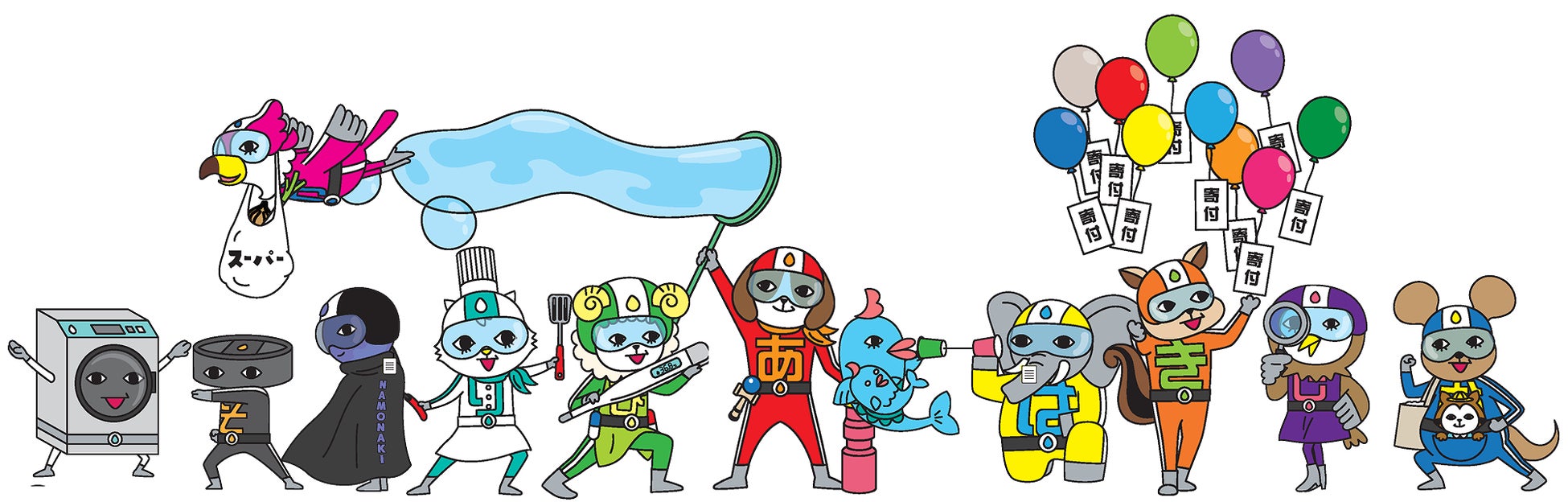 子育て家庭の日常、子育てレンジャーが日常をサポートする様子、地域の人々との交わり、寄付等の支援の広がりなど、みんなが日々をおもしろがり活気に満ちた未来が描かれています。