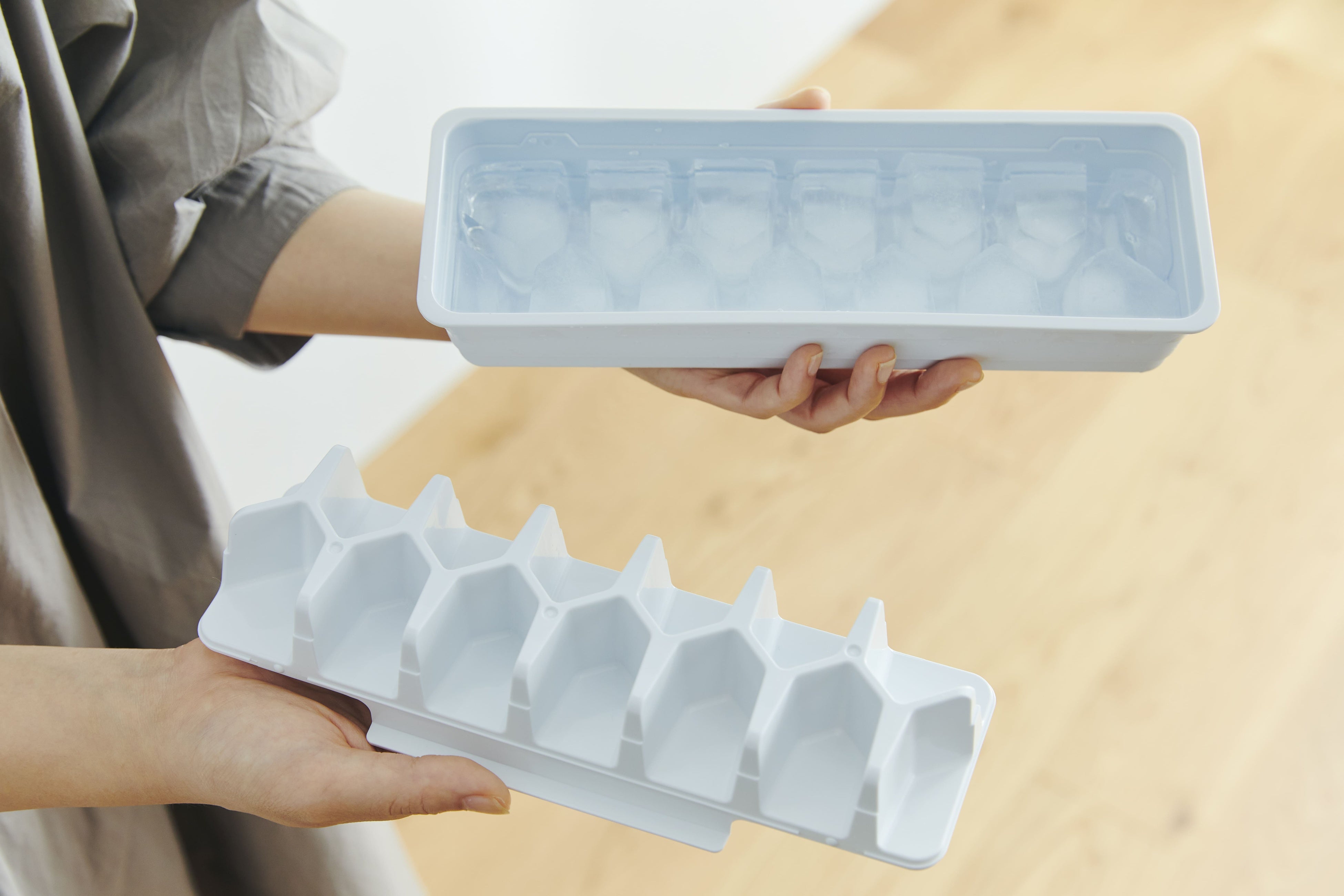 軽くひねるだけで簡単に氷を取り出せるなど、従来の製氷皿の