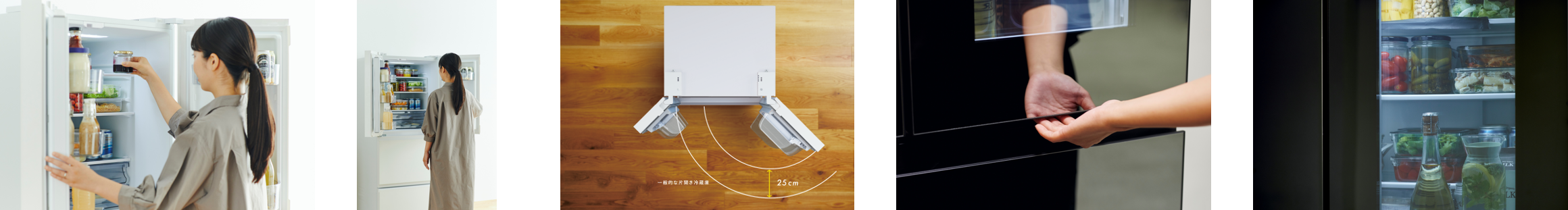 ドアを開けずにじっくり中身が確認できるから、中身を確認したらすぐ閉めなければいけないという当たり前から解放されます。人と冷蔵庫がずっとスムーズに関わりあえる、あたらしい暮らし方の提案です。