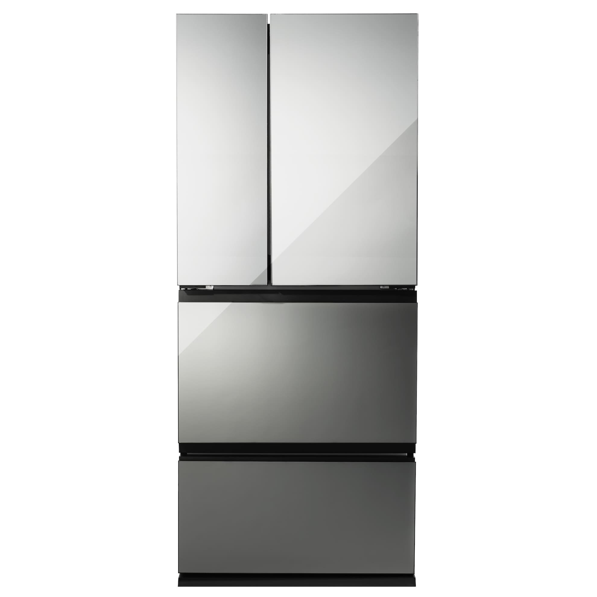 センサーにタッチすることで、ミラーガラスが透けて冷蔵庫内が確認可能になります。最上段の高さが低く、奥行きも浅いため、大きなウインドウですみずみまで見渡せます。ドアを開閉する回数や時間が減ることで冷気漏れが少なくなり、消費電力も抑えられます。