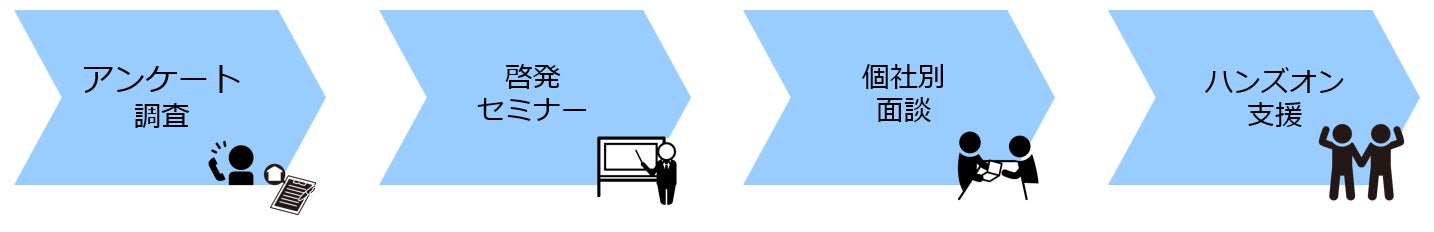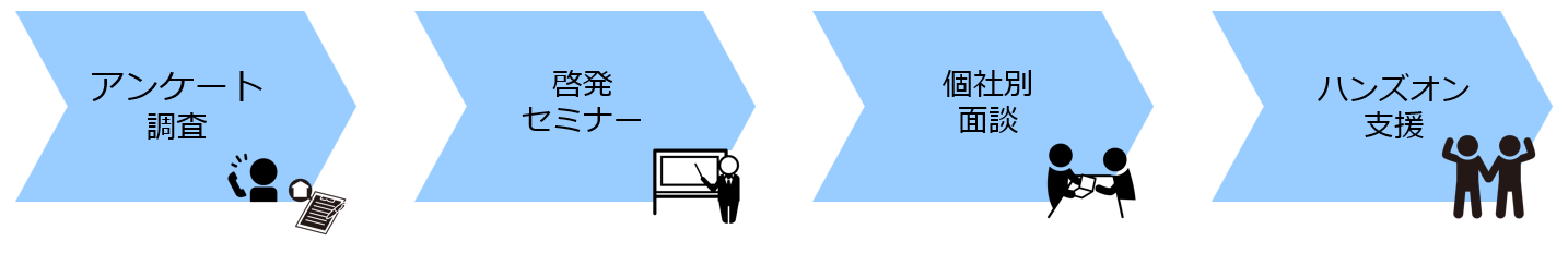 上記啓発セミナー動画をご覧頂き、それを契機に個別面談を実施。ご面談の中で、親族内承継を考えているものの、まずは足元の業況改善に向けた販路開拓や商流の変更が課題であることを把握。連携支援機関である郡山商工会議所をご紹介し、販路開拓を含めたさまざまな支援提供を実施しております。
