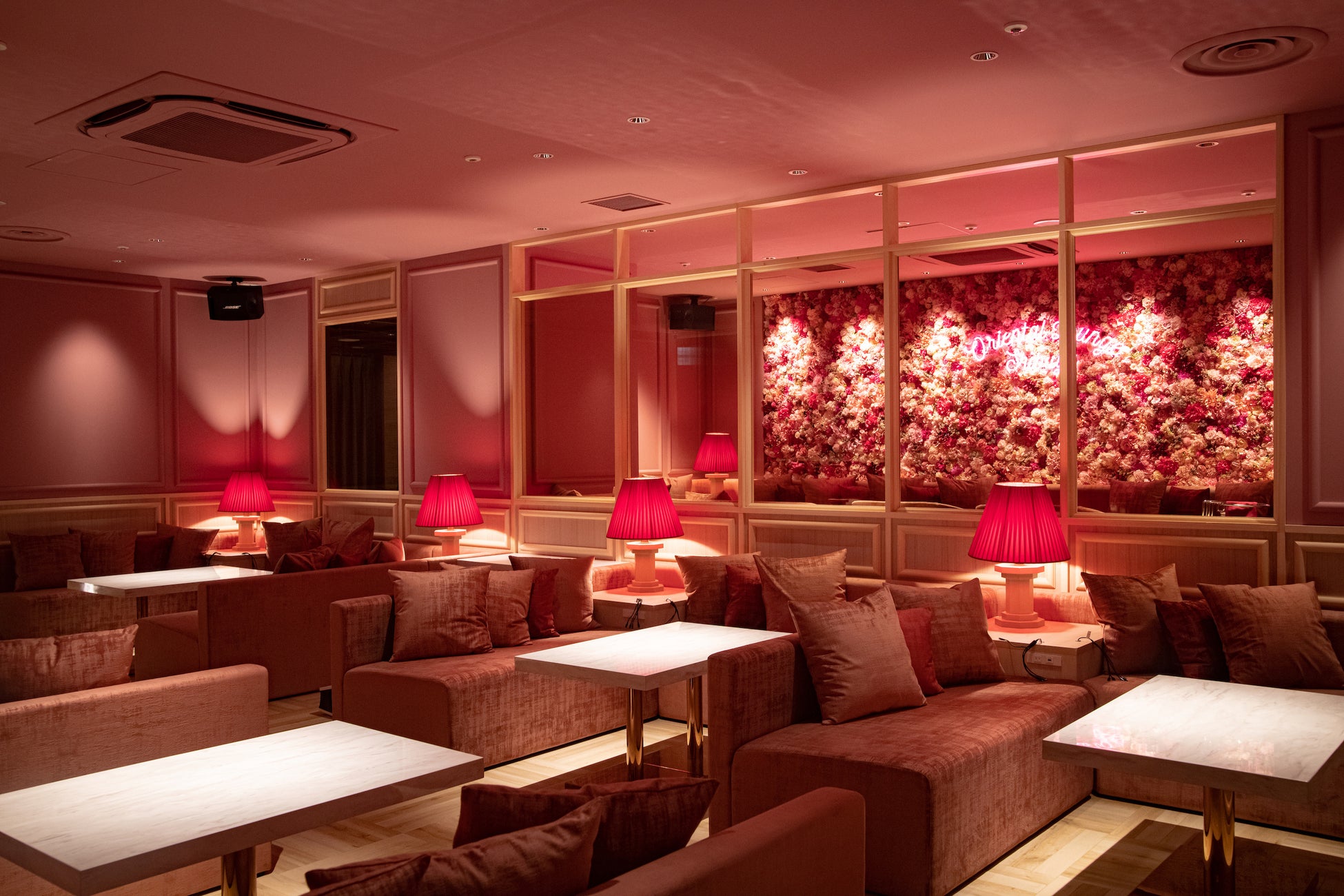 韓国料理が中心のフードに、韓国っぽいネオンの内装、オリエンタルラウンジとは一味違う時間を過ごすことができます。