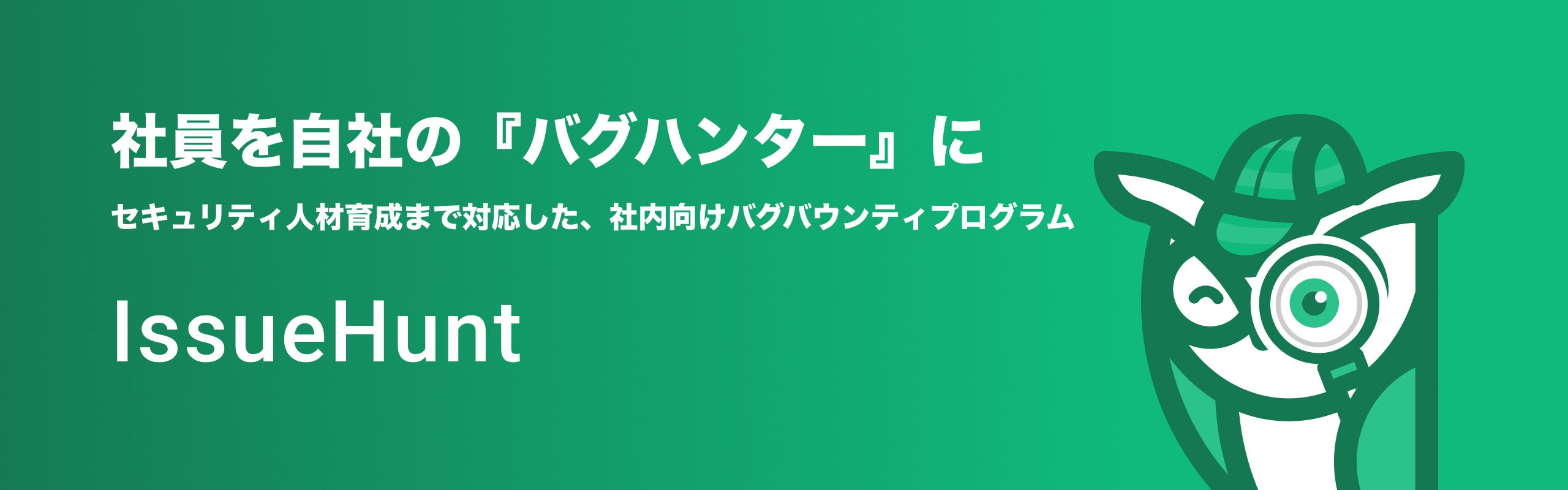 当社は、世界中のバグハンター達に、自社サービスや製品の脆弱性を成果報酬型で見つけてもらえるサービス「IssueHuntバグバウンティ」( https://issuehunt.jp/ )等の提供を行っており、上場企業を中心に導入頂いております。