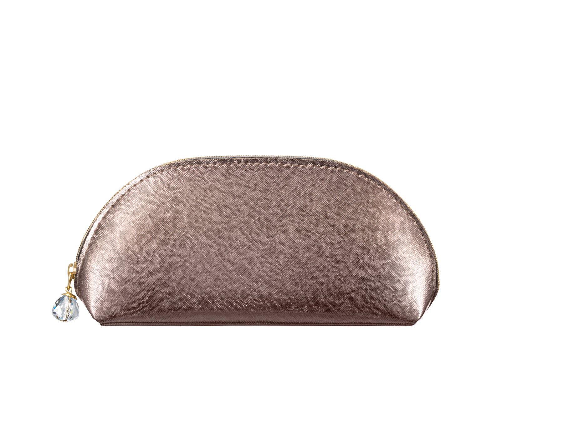 大人っぽさを感じさせる、ブロンズグレーの「サフィアーノ調」ポーチ。冬の澄みきった空気に、きらきらと揺れる光をイメージしたクリアチャーム付き。コフレのアイテムが全て入る、持ち歩きに便利な限定ポーチです。