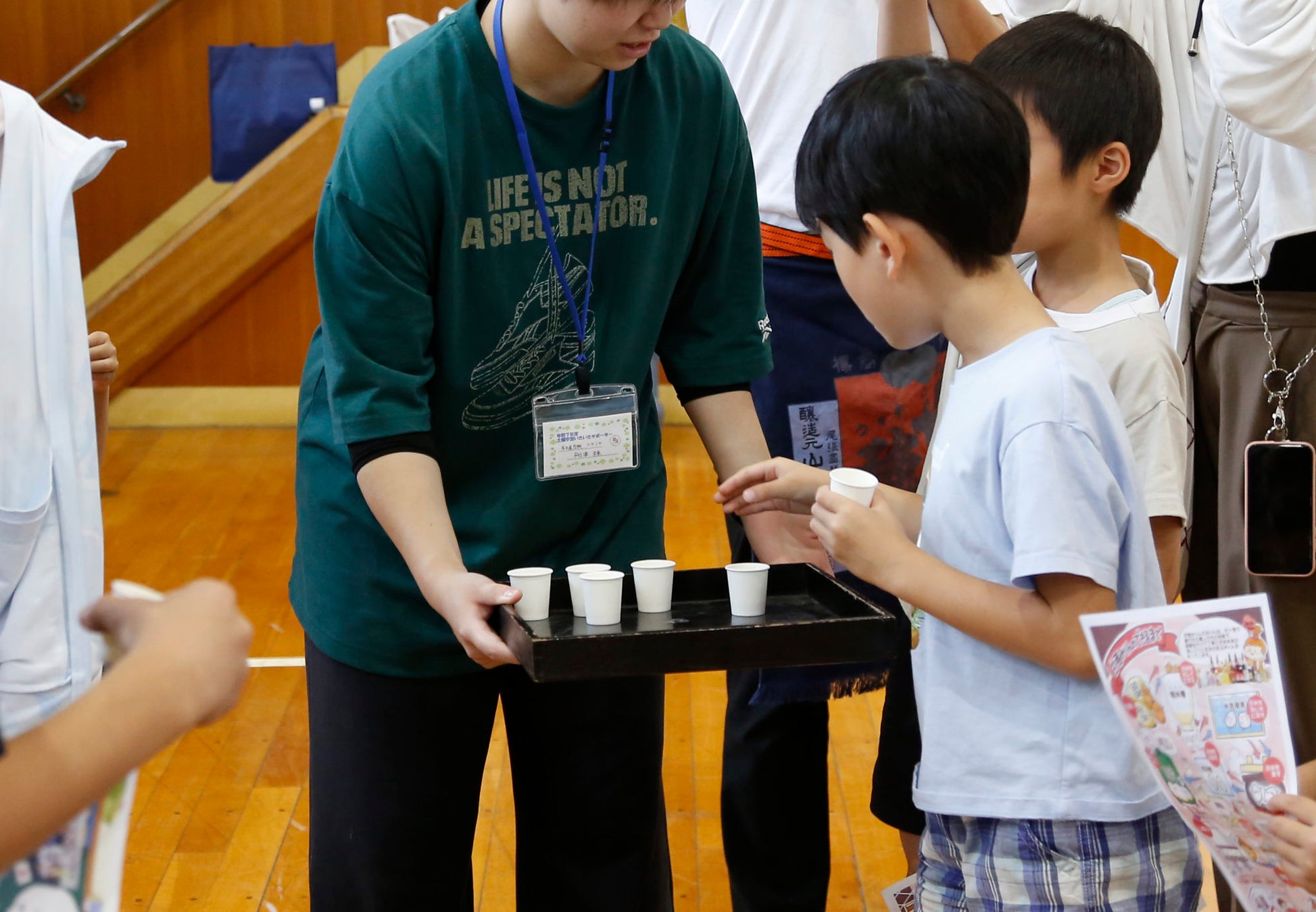 第2部では、文久2年(1862年)創業の甘強酒造様にご協⼒により、甘酒の製法や歴史についてのミニ講義と、実際の甘酒を使った試飲体験を実施。児童たちは五感で伝統の味を学びました。