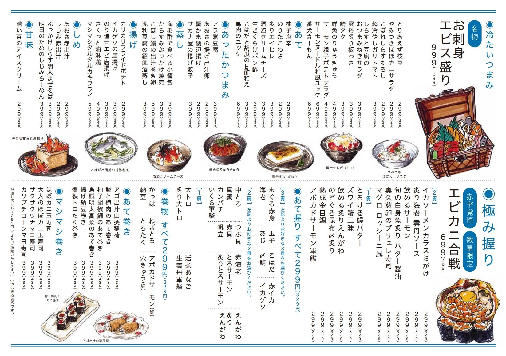 【おつまみ感覚でつまめる「あて巻き」や、気軽に頼める「あて握り」は1貫99円~(税込109円)】