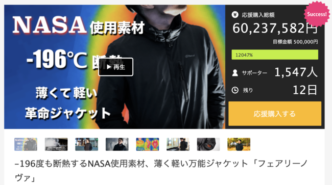 フェアリーノヴァは過去に沢山のご支援を頂き、クラウドファンディングにてわずか24日で、8,472万円のご支援を頂くことができました。その翌年に実施した予約販売は1億円を突破し、シリーズ累計で約2億円を集めました。