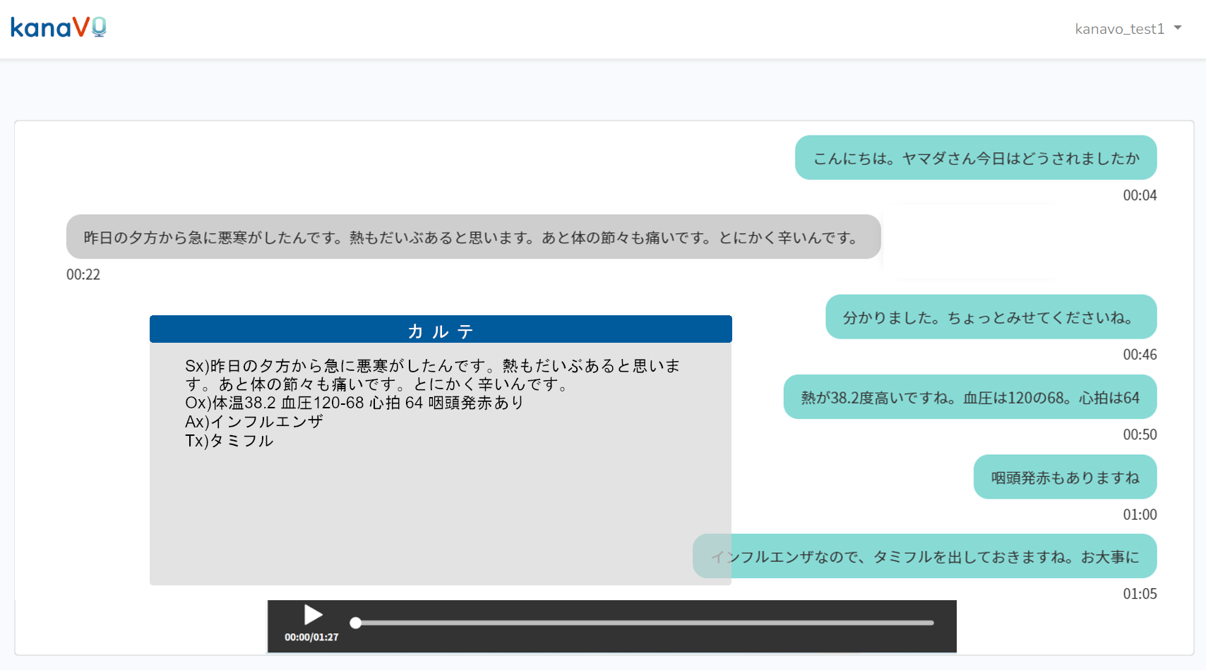 このような課題に着目した当社は、オンライン診療上での医師と患者の会話に対応したモデルのkanaVoをリリースしました。これによりモニター越しの患者に集中できる医師は、患者の状態変化等を迅速かつ的確に把握できることとなります。