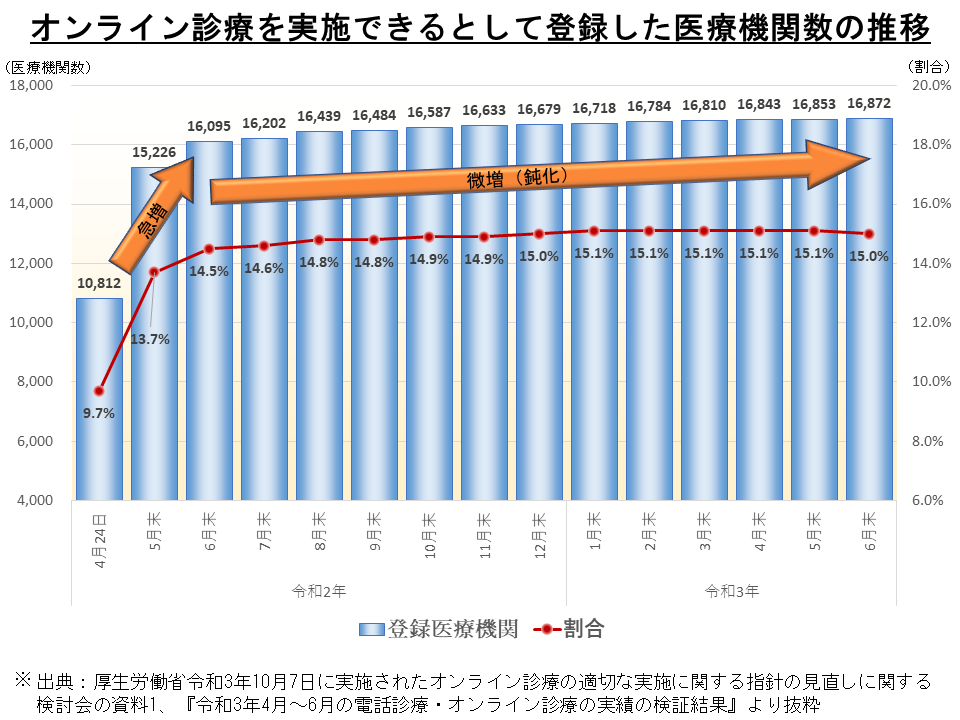 新型コロナウイルス感染症が医療界に与えた変革の一つが、オンライン診療の活用です。2020年4月10日、厚労省から『電話や情報通信機器を用いた診療等の時限的・特例的な取扱い』が発出され、非対面診療の大幅な規制緩和がはかられました。