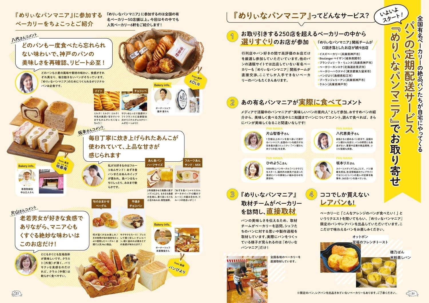 行列店やパン好きの間で高評価のベーカリーだけを厳選しお届けする、パンの定期配送サービス『めりぃなパンマニア』が2022年2月10日(木)からスタートします。ここでしか入手できない有名ベーカリーのパンや、オリジナルパンも。さらに、メディアで活躍中のあのパンマニアが”美味しいパンの案内人”として参加し、実際に食べてコメントをいただきました。パンの美味しく食べる方法やミニ知識まで、読んで食べればさらにパンが美味しくなること間違いなしです!さらに『めりぃさん』読者限定でお得な先行予約キャンペーンをご用意。ぜひ情報誌をご確認ください。