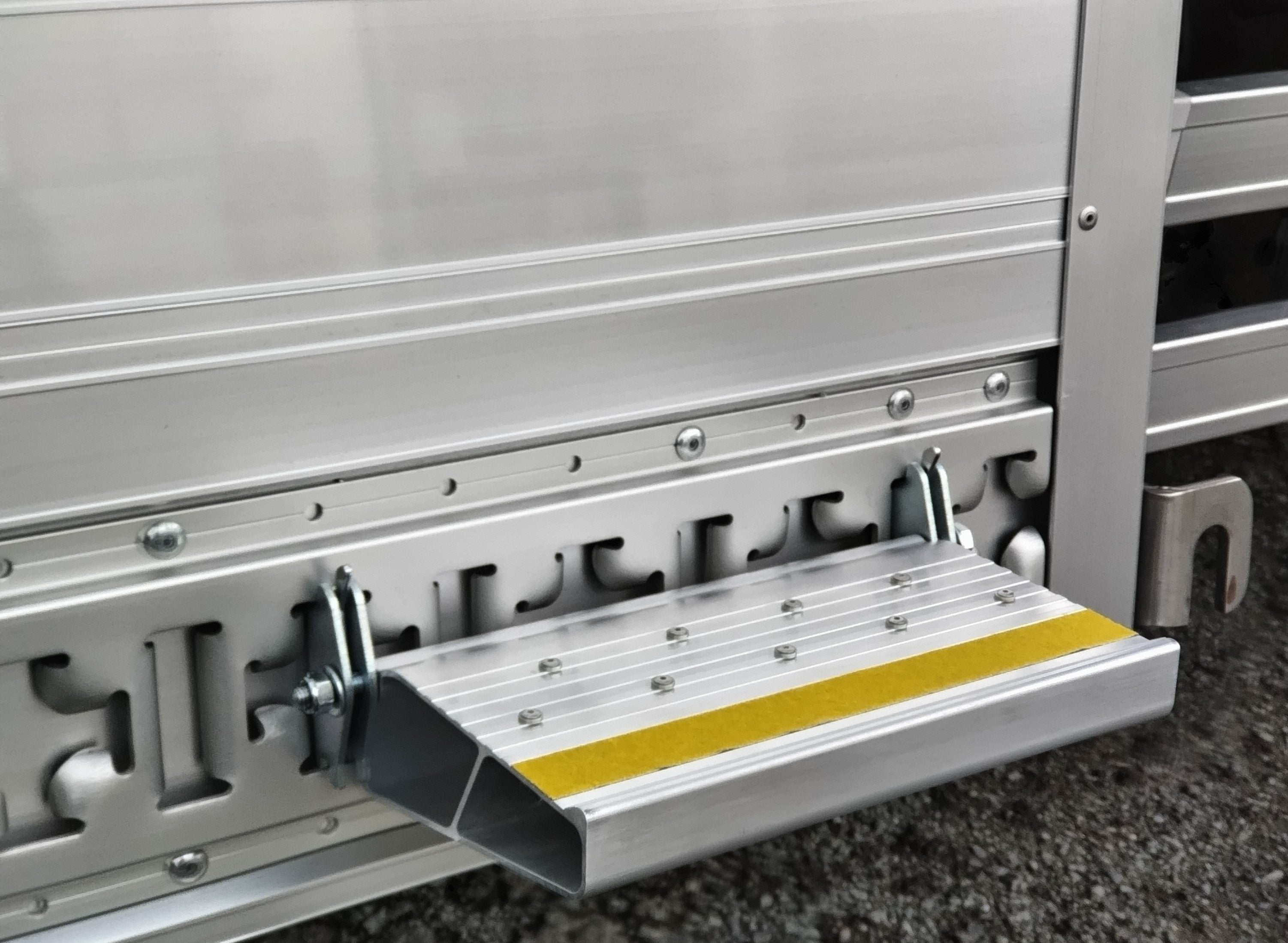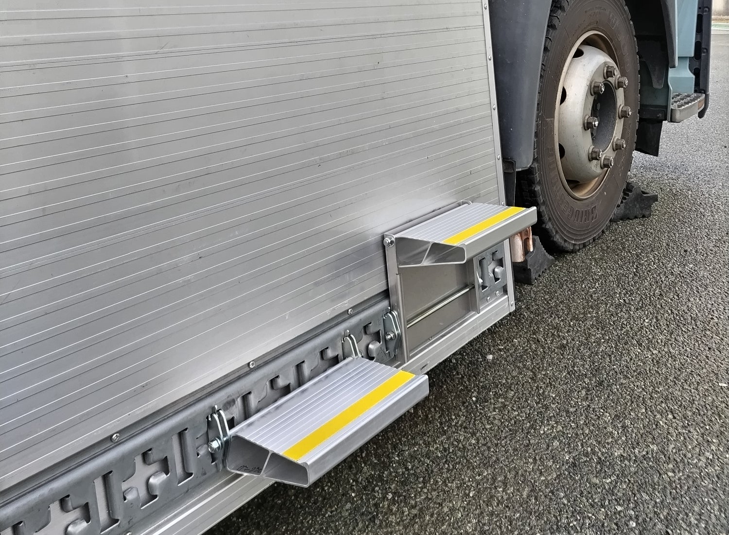「グラディーノ~gradino~」は、トラック荷台への昇降をサポートするための脱着式ステップです。