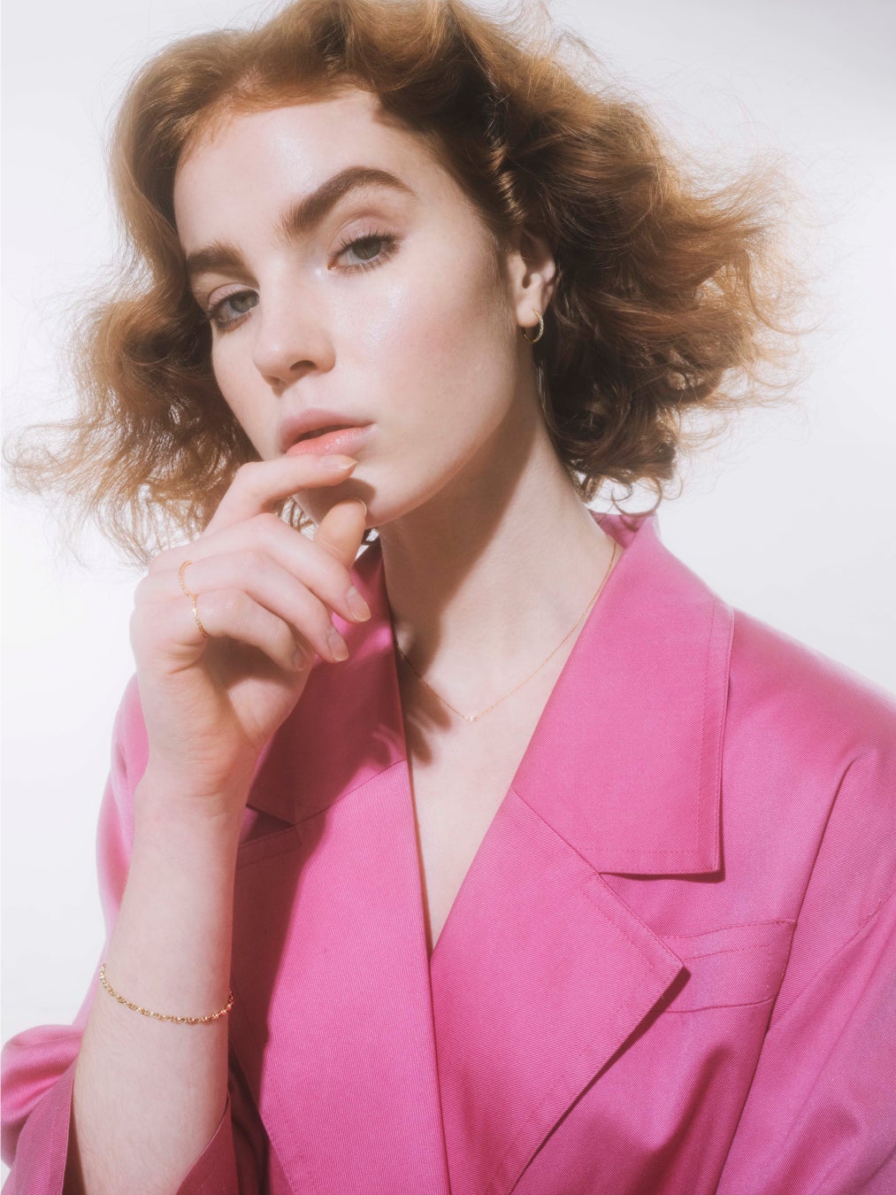 80年代のエネルギッシュな女性像がイメージで、シンプルながら、素肌に乗せると存在感を発揮し、強さを感じる1本。チェーンの中は空洞になっているので、重厚感のある見た目に反して、つけ心地は軽やか。