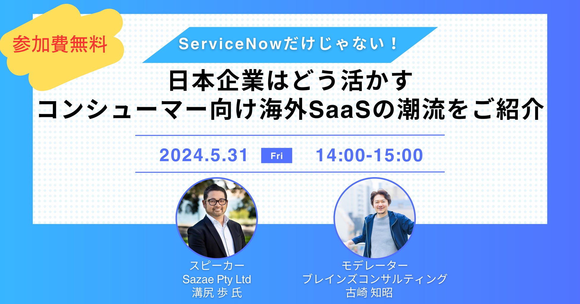 【5/31開催ウェビナー】ServiceNowだけじゃない!日本企業はどう活かす、コンシューマー向け海外SaaSの潮流をご紹介