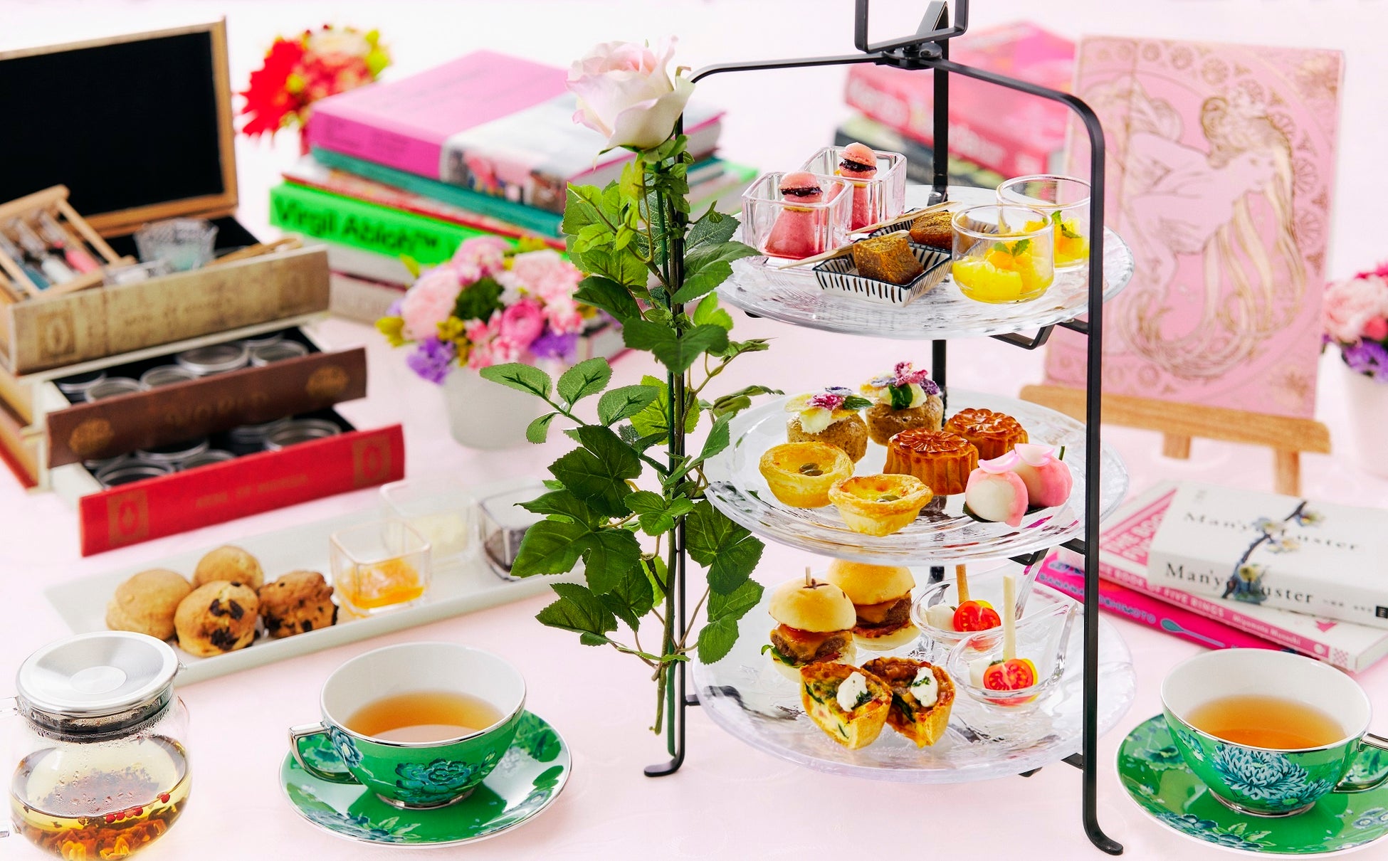 人形造花をイメージした桜餡の月餅/ジャスミン風味の蒸しカステラ(馬拉糕:マーラーカオ)/エッグタルト