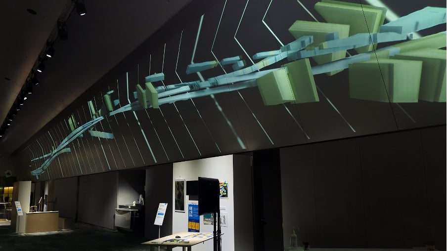 本プログラムでは、TODA BUILDING 4階のTODA HALL & CONFERENCE TOKYOに設置された長大なプロジェクションウォール(縦:約2.8m、幅:約45m)を最大限に活かし、プログラマー・アーティストの永松歩氏による作品を展示いたします。
