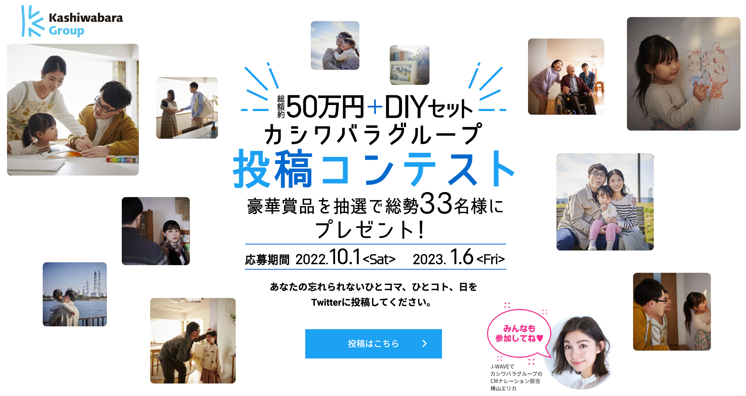 大型建造物のメンテナンス事業を主軸に展開するカシワバラグループ初となる一般参加者向けのTwitter投稿キャンペーン。同グループの新築事業やリフォーム事業、住宅ローン等、より一般消費者向けに展開しているサービスの認知獲得を狙います。