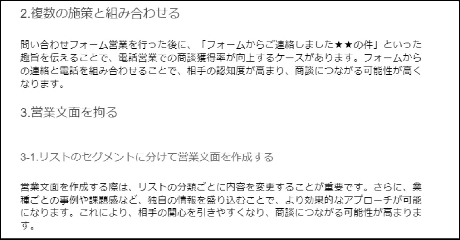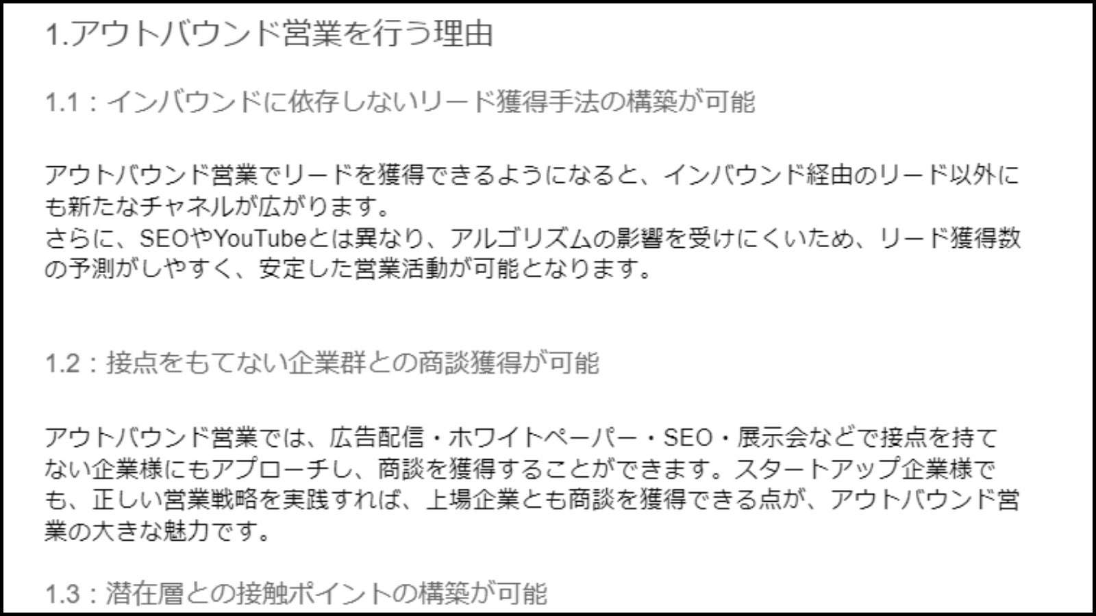 このように、アウトバウンド営業を行ううえで必ず知っておきたい内容を細かく記載しています。