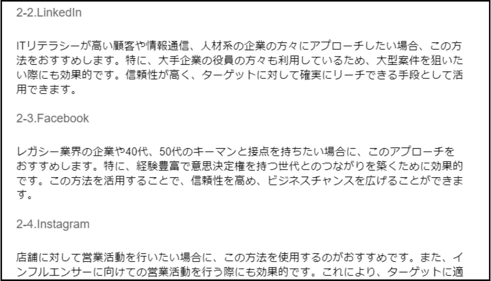 「SNS営業」についての項目には、以下の内容が含まれています。
