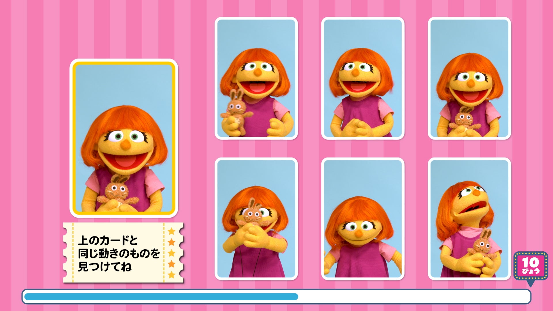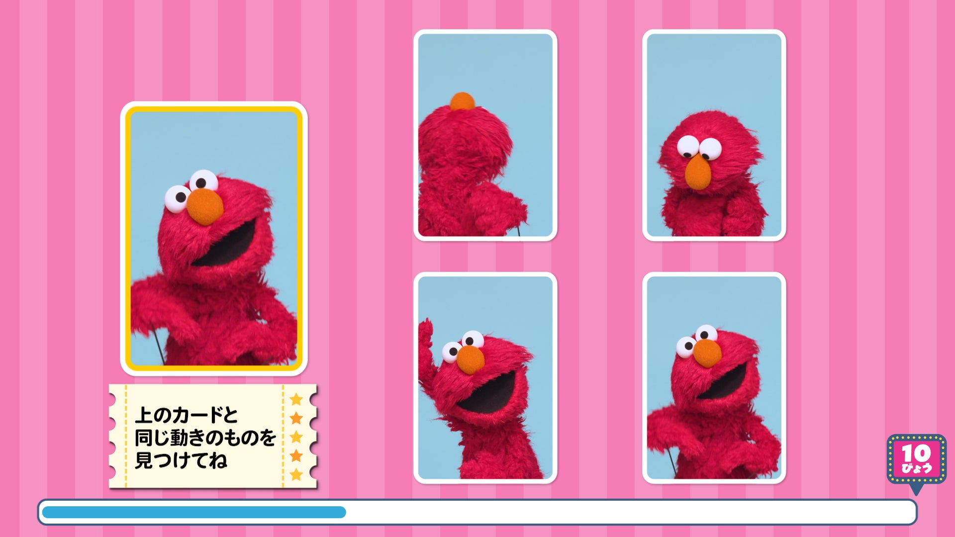 フレンズ・マッチ:セサミストリートの仲間の動きをよく見て、同じ動きを見つけるゲームです。