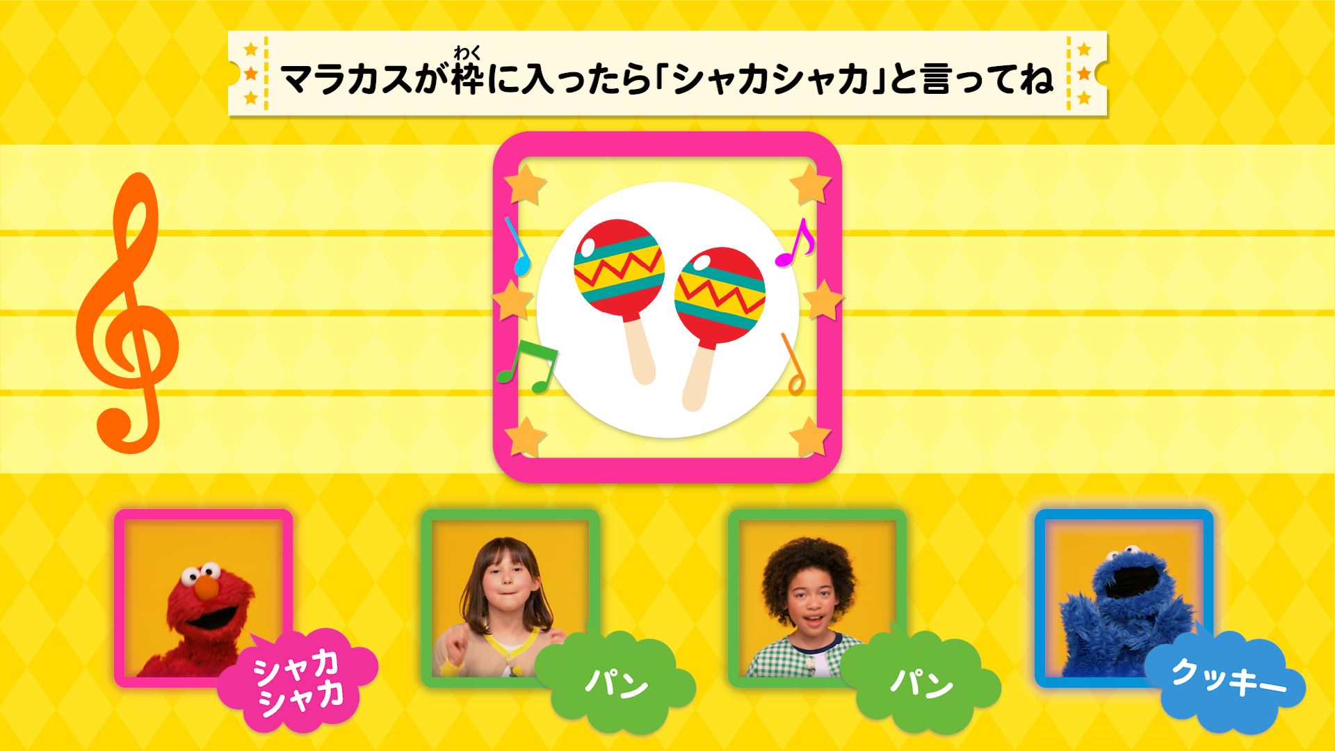 キープ・ザ・リズム:自分の声を楽器にして、エルモたちと声の合奏をするゲームです。