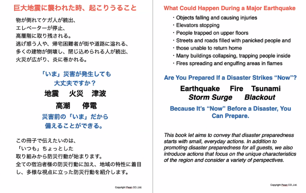 [株式会社PWAN][電子多言語防災ガイドブックリリース]ホテルのWi-Fiキャプティブポータルに災害時の防災マニュアルを電子多言語防災ガイドブックとして導入