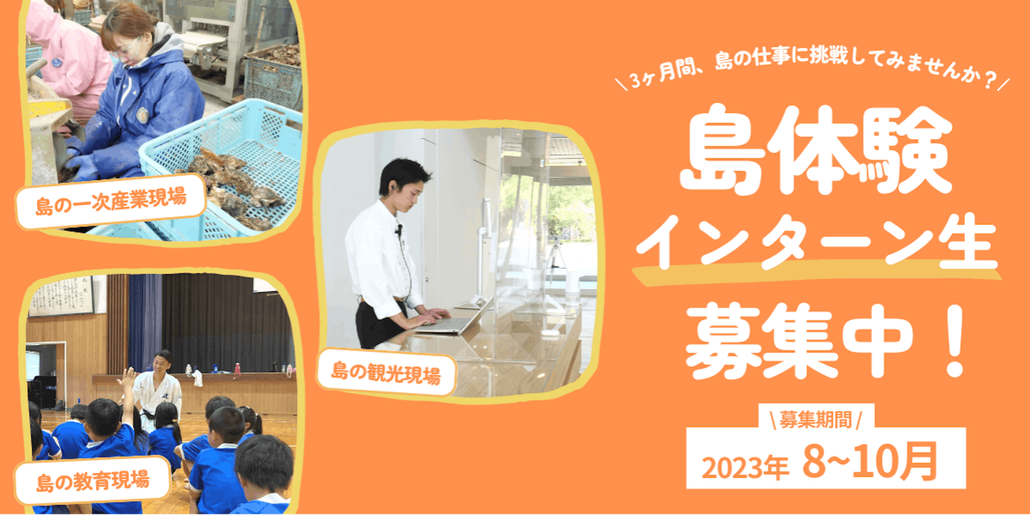 現在、令和5年度8月より3ヶ月間「島体験インターンシップ」へ参画する方を募集しています。