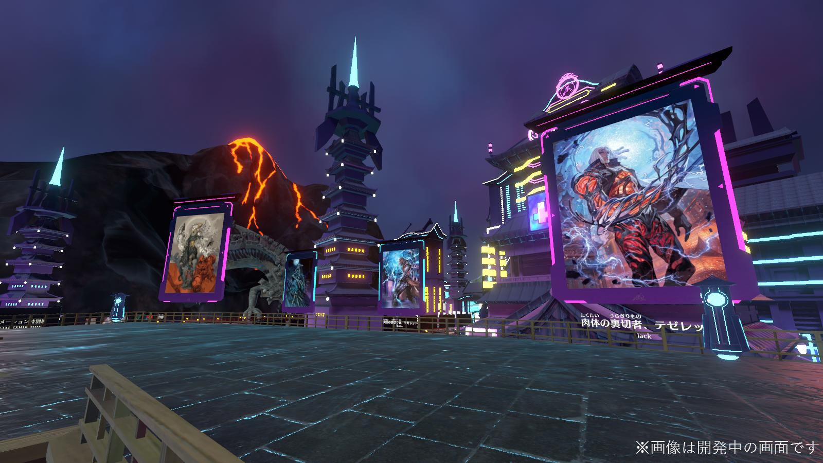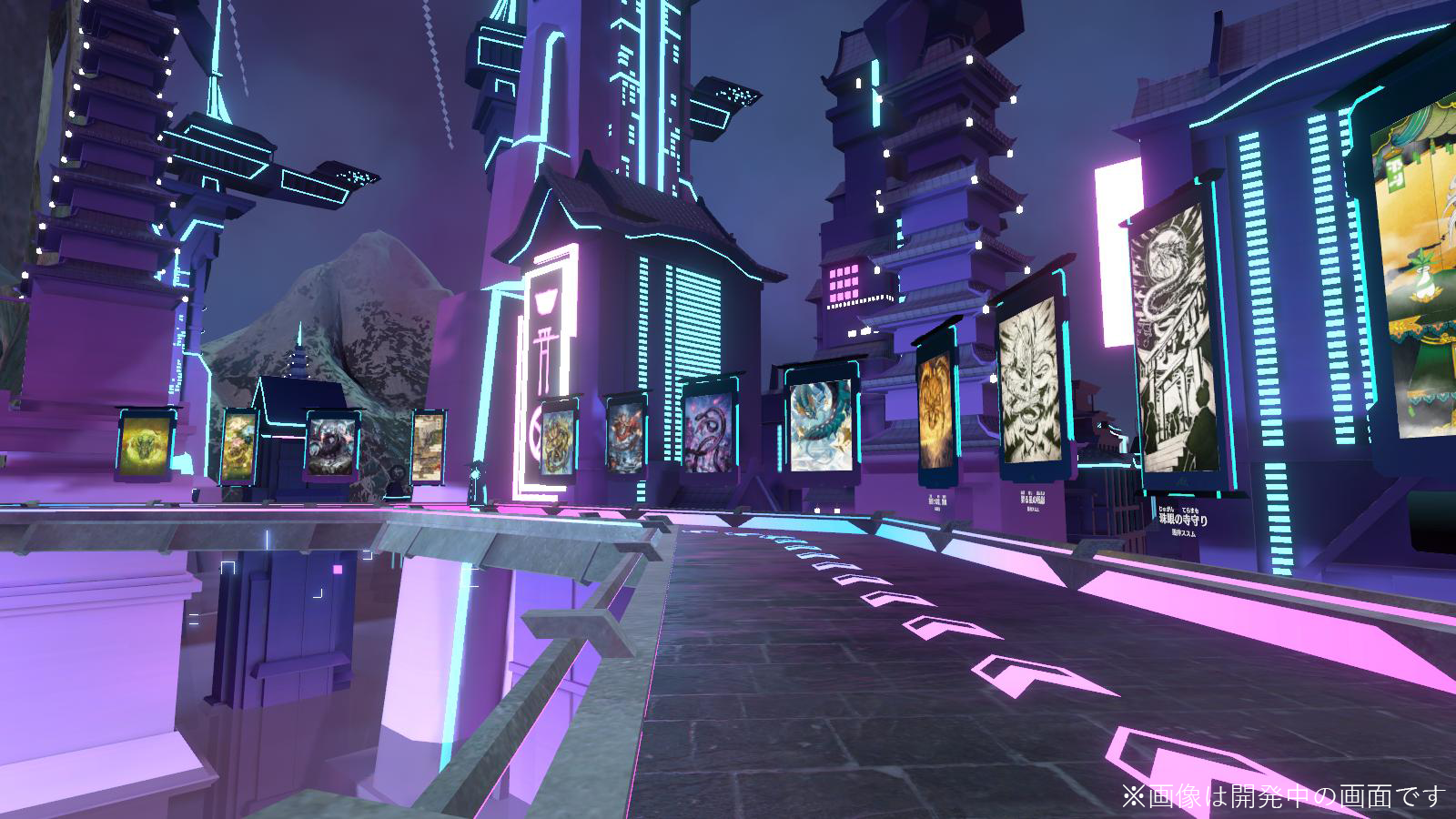 本プロジェクトでは新セット『神河:輝ける世界』の舞台であるサイバーパンクな街「都和市」をVR 空間に再現。セットに収録される数々の素晴らしいアートを、アーティスト自身の解説付きで鑑賞できるバーチャルなアート展を開催します。 家から楽しめる、メタバース時代の新しいアート体験をお楽しみください!