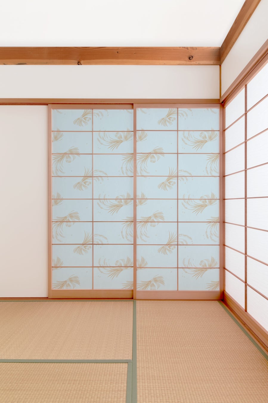 また、ふすまと同柄のラインナップをご用意しているため、 和室全体のトータルコーディネートが可能。 自宅の模様替えから旅館・宿泊施設の演出まで、幅広いシーンでお使いいただけます。