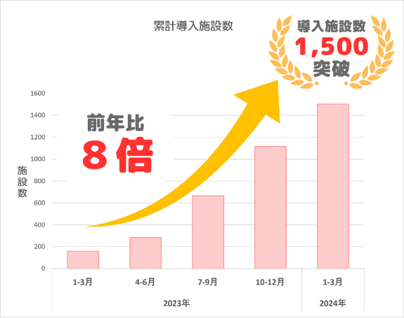 icucoは2023年12月に導入数1,000施設を突破し、約3ヶ月足らずで1,500施設の導入に至りました。